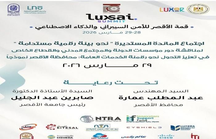 تحت رعاية الدكتورة صابرين عبدالجليل رئيس جامعة الأقصر، وبدعم المهندس عبدالمطلب عمارة محافظ الأقصر، وبإشراف الدكتور أسامة أبوالنصر عميد كلية الحاسبات والمعلومات، تنظم جامعة الأقصر بالتعاون مع جامعة الأقصر الأهلية اجتماع المائدة المستديرة نحو بيئة رقمية مستدامة، لمناقشة دور مؤسسات الدولة والمجتمع المدني والقطاع الخاص في دعم الرقمنة والخدمات الرقمية: محافظة الأقصر نموذجًا، ضمن فعاليات قمة الأقصر للأمن السيبراني والذكاء الاصطناعي المزمع عقدها في الفترة 28 – 29 مارس 2026.