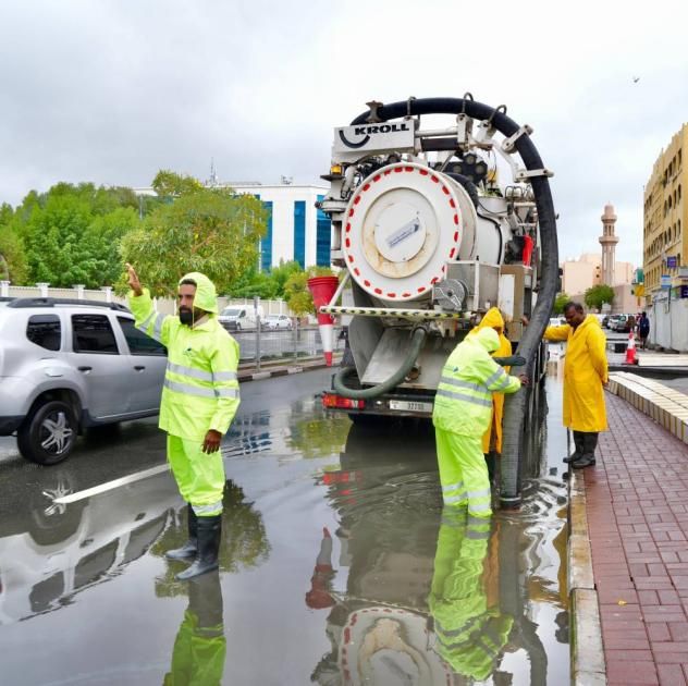 من جانبها، كثّفت بلدية دبي جهودها لسحب مياه الأمطار المتجمعة أولاً بأول، من خلال تشغيل مضخات ثابتة ومتحركة، مدعومة بكوادر بشرية كبيرة تضم مهندسين ومشرفين وعمالاً، يعملون بكفاءة عالية للتعامل مع التقلبات الجوية.