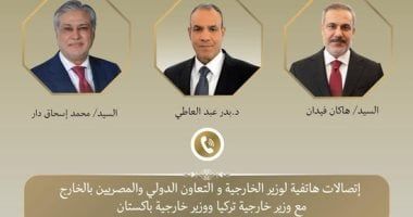 جرى اتصالان هاتفيان بين د. بدر عبد العاطي وزير الخارجية والتعاون الدولي والمصريين بالخارج، وكل من محمد إسحاق دار نائب رئيس الوزراء ووزير خارجية جمهورية باكستان الإسلامية وهاكان فيدان وزير خارجية الجمهورية التركية، اليوم الخميس، لبحث التطورات المتسارعة والتصعيد العسكري الخطير الذي تشهده المنطقة.