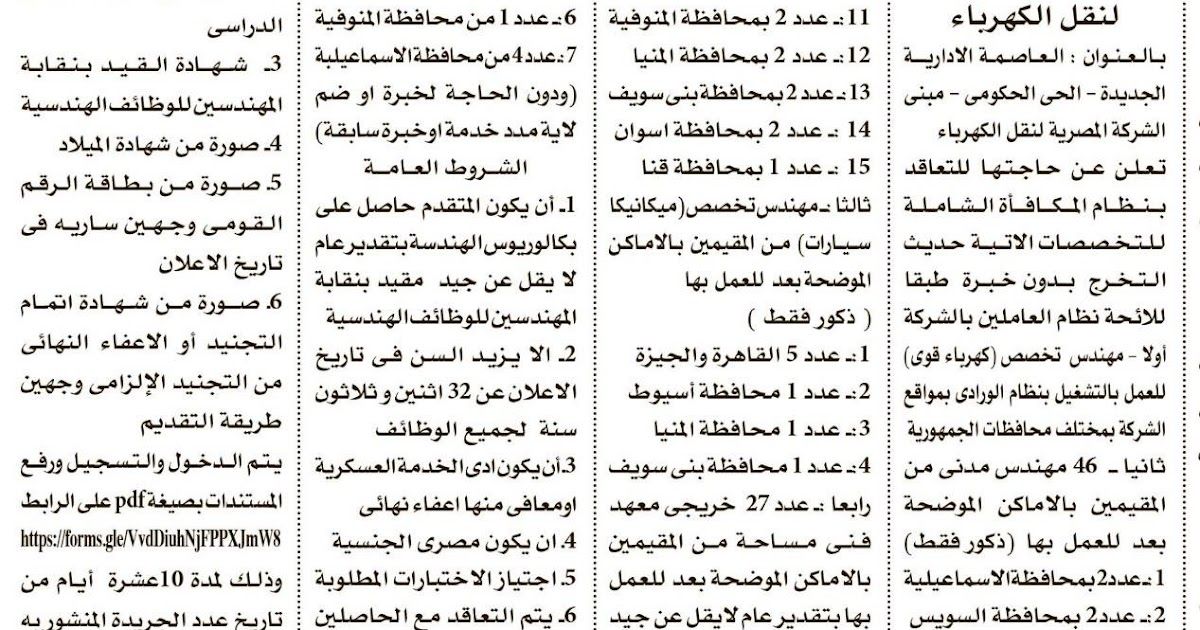 جريدة الاهرام وظائف شركة الكهرباء