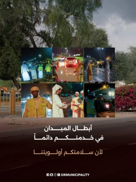انتشار واسع لفرق العمل للاستجابة في وقت قياسي على مستوى مدن منطقة الظفرة، حيث بلغت نسبة التعافي 85%، بهدف الحفاظ على سلامة أفراد المجتمع والممتلكات، وتعزيز انسيابية الحركة المرورية، والتعامل مع كافة الحالات والبلاغات المرصودة وفق أعلى درجات الاستجابة والمتابعة الميدانية وأبطال الميدان في الخدمة دائماً لأن «سلامتكم أولويتنا».