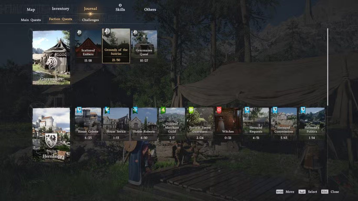 عند فتح تبويب Grounds of the Sunrise ضمن مهام فصيل Greymanes، ستجد أمامك شبكة واسعة ومعقدة من المهام المتنوعة والمترابطة، حيث تبدأ بعض هذه المهام بعبارة “A rumor…”، وهي تشير إلى شائعات حول مواقع تواجد أعضاء آخرين من فصيل Greymanes المنتشرين في أرجاء عالم اللعبة الضخم والمتنوع. هذه المهام ليست مجرد أنشطة جانبية عابرة، بل تمثل الطريقة الأساسية لتجنيد رفاق جدد للمعسكر، ما يمنح اللاعبين فرصة لتوسيع فريقهم والاستفادة من مهارات وقدرات كل شخصية جديدة، ويتيح لهم استكشاف مناطق لم يسبق لهم زيارتها والتفاعل مع بيئات غنية بالتفاصيل والمخاطر.