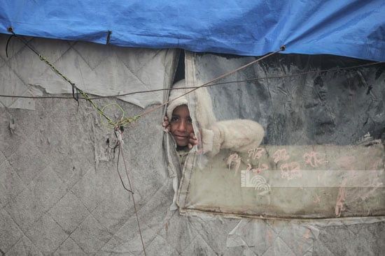 طفلة فلسطينة ينظر من خيمة