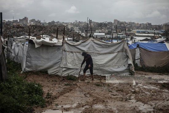 نقلت وكالة الأنباء الفلسطينية وفا تقريرا ترصد فيه معاناة النازحين داخل الخيام فى قطاع غزة مماد يزداد المعاناة اليومية مع برد الشتاء القارص وتساقط الأمطار والفيضانات التى تجتاح قطاع غزة حسبما نقلت الوكالة.