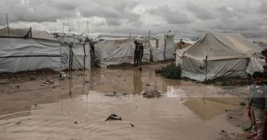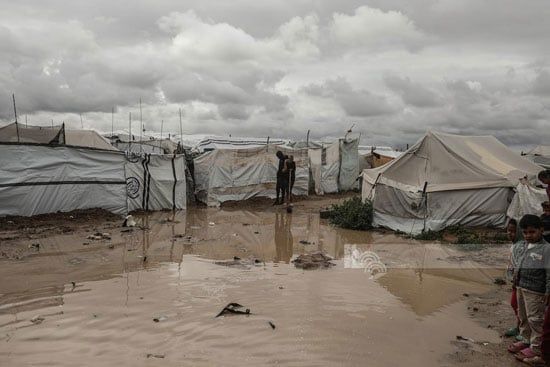 مياه الأمطار تحاصر الخيام