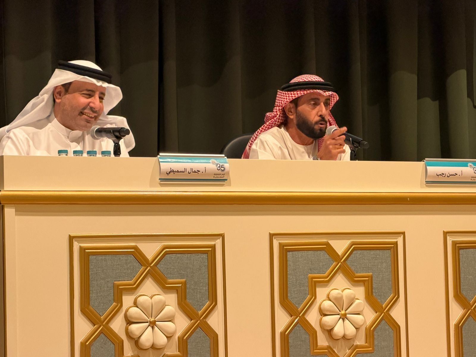 بدايات جمال السميطيكما تطرق السميطي إلى بداياته المسرحية، مستعيدًا أولى مشاركاته في مسرحية “جسر آرتا” عام 1985، والتي وصفها بأنها كانت نقطة التحول في حياته، رغم صغر دوره حينها. وقال: “وقوفي لأول مرة أمام الجمهور كان مليئًا بالخوف والرهبة، لكن بعد دقائق تحول ذلك إلى ثقة وفرح لا يوصف، ومن هنا بدأت الرحلة الحقيقية”.