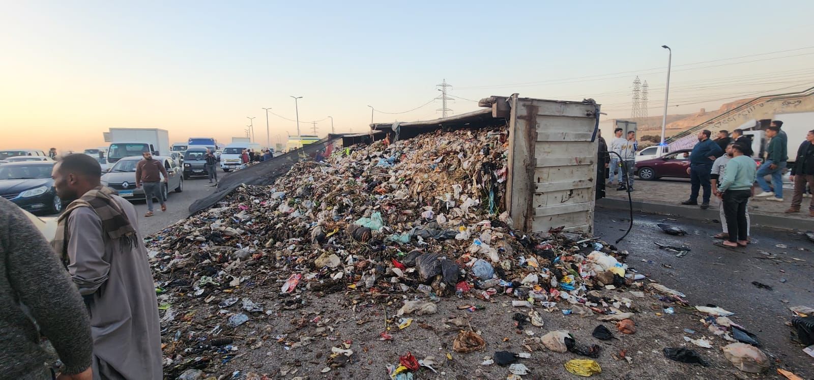 الأحد، 29 مارس 2026 07:53 مكشفت معاينة حادث محور الأوتوستراد ، انقلاب سيارة مقطورة تحمل أرقام المقطورة ( ا ي ق - ٥٨٦٧ ) - الجرار ( ب م ص - ٨٢٣ ) السياره محملة بالمخلفات متجهة إلى مايو قيادة (ك .م .ي ) واصطدمت بطفلتين على الطريق.