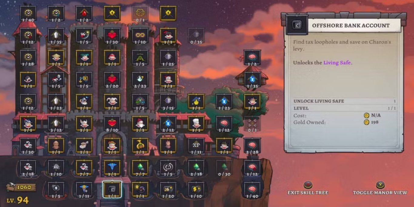 ورغم أن هذه الآلية تبدو وكأنها تكتيك غير مباشر أو التفاف على قواعد اللعبة، فإنها منسجمة مع روح Rogue Legacy 2، لا سيما أن Charon نفسه لا يتعامل بإنصاف كامل مع اللاعب، إذ يقتطع معظم مكاسبه عند كل وفاة. ولهذا السبب، تُعد Offshore Bank Account استثمارًا ذكيًا يساعد على تخفيف وطأة الخسارة، ويمنح اللاعبين قاعدة مالية أقوى للبناء عليها مع كل محاولة جديدة.