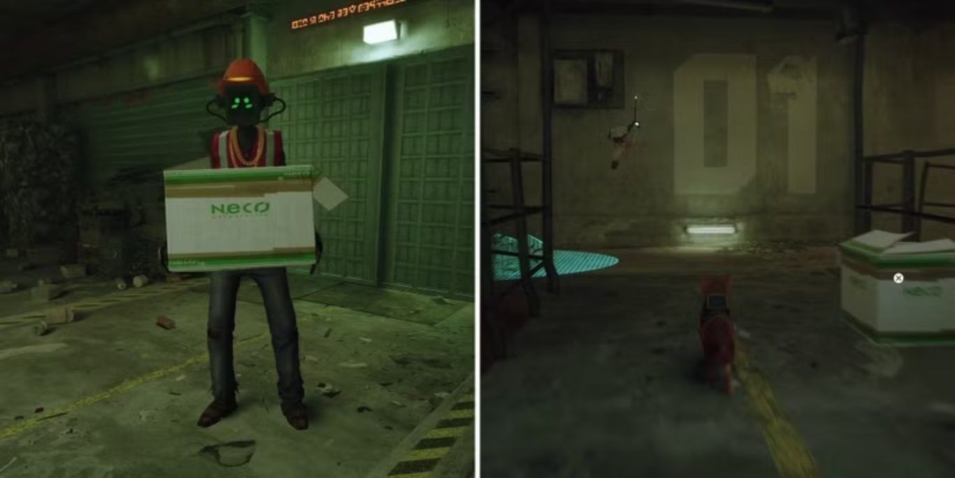 الآن بعد أن أصبح لديهم Worker Hat و Jacket، يجب على اللاعبين العثور على Blazer في الزقاق إلى يسار متجر الملابس الذي كانوا فيه. بعد إظهار الملاحظة من Clementine، سيوافق Blazer على مساعدتهم في تهريب القط إلى مصنع Neco Corp، لكنه سيحتاج إلى زي تنكري للقيام بذلك. لحسن الحظ، لدى اللاعبين كل ما يلزم، لذا يجب عليهم تسليم Worker Hat و Jacket وانتظار أن يرتدي Blazer الزي. بعد أن يصبح جاهزًا، كل ما عليهم فعله هو القفز داخل صندوق الكرتون لدخول المصنع.