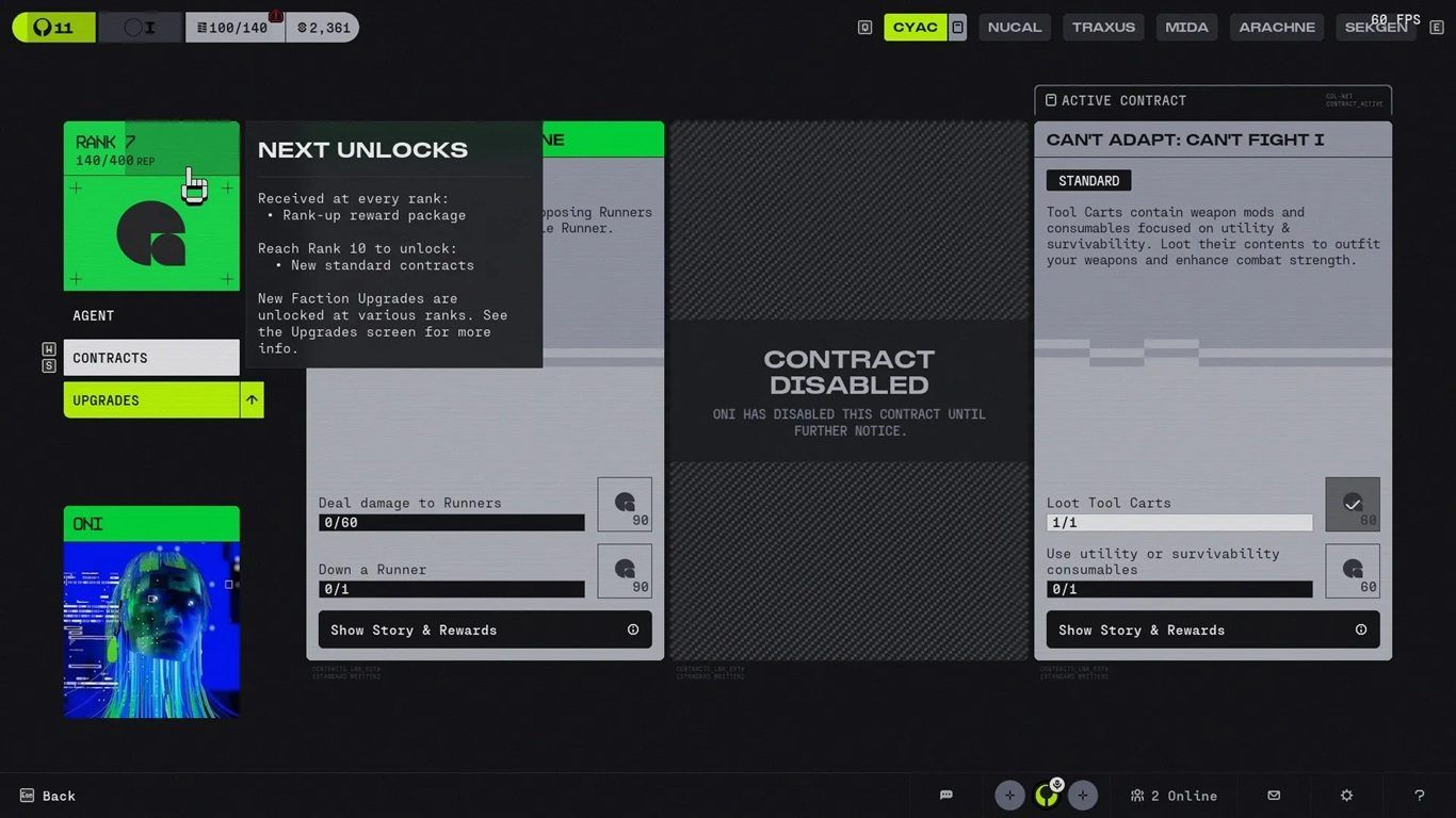| CyberAcme | متاح بشكل افتراضي منذ البداية. لمتابعة فتح بقية الفصائل، يجب إكمال مهمتي Welcome to Tau Ceti 1 و Welcome to Tau Ceti 2. |