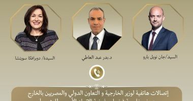 تلقي د. بدر عبد العاطي وزير الخارجية والتعاون الدولي والمصريين بالخارج اتصالاً هاتفيا من "جان نويل بارو وزير خارجية فرنسا، كما تواصل مع دوبرافكا سويتشا، مفوضة الاتحاد الأوروبي للمتوسط، أمس الاحد، حيث تم تناول التطورات المتسارعة فى الاقليم والتصعيد العسكري الذي تشهده المنطقة، والجهود المبذولة لخفض التصعيد.