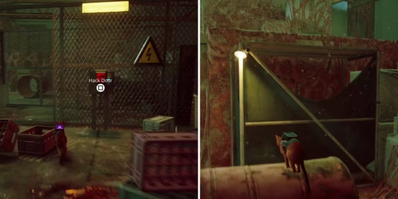 على الجانب الآخر من الرافعة، يجب على اللاعبين دفع لوح خشبي بالضغط على زر Triangle، مما سيمكنهم من دخول المبنى أمامهم عبر فتحة التهوية المكسورة. بعد القفز فوق السياج المعدني أمامهم، يتجه اللاعبون إلى الجانب البعيد من الغرفة عبر السقالات على اليمين ثم استخدام Meow لصرف Zurks حتى يتمكنوا من الاستمرار بالصعود عبر المزيد من السقالات وعبور العارضة المعدنية المتأرجحة.