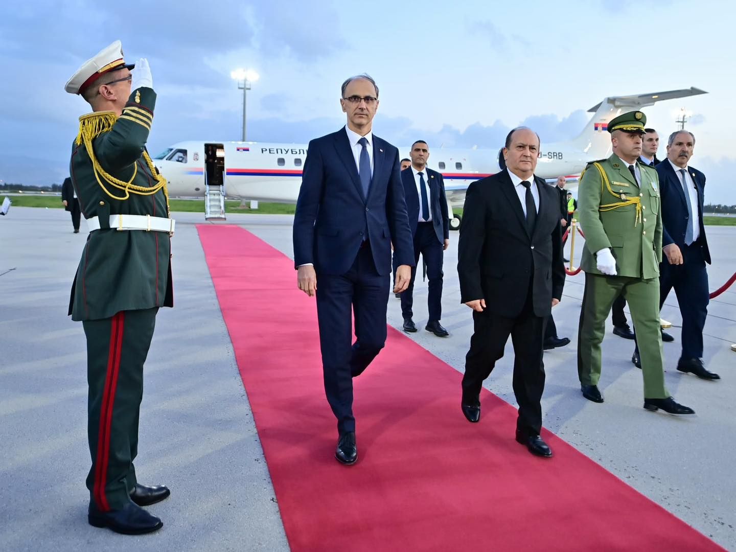 وكان في استقباله، لدى وصوله إلى مطار هواري بومدين الدولي، الوزير الأول سيفي غريب، مرفوقًا بوفد وزاري، إلى جانب الأمين العام لوزارة الشؤون الخارجية، لوناس مقرمان، ومحرز فاتح، سفير الجزائر بصربيا.