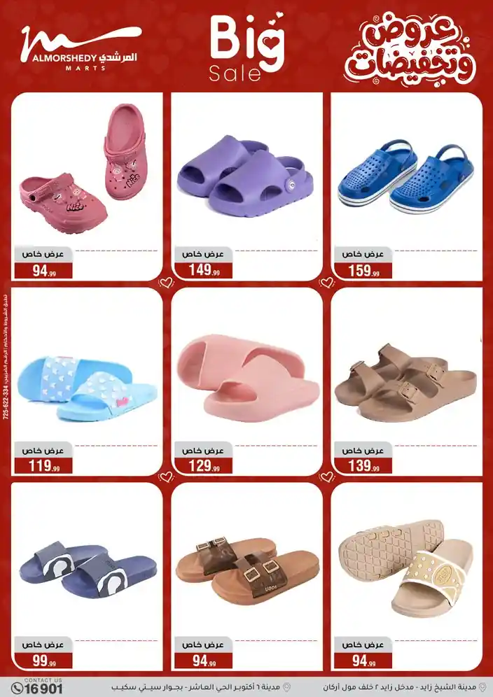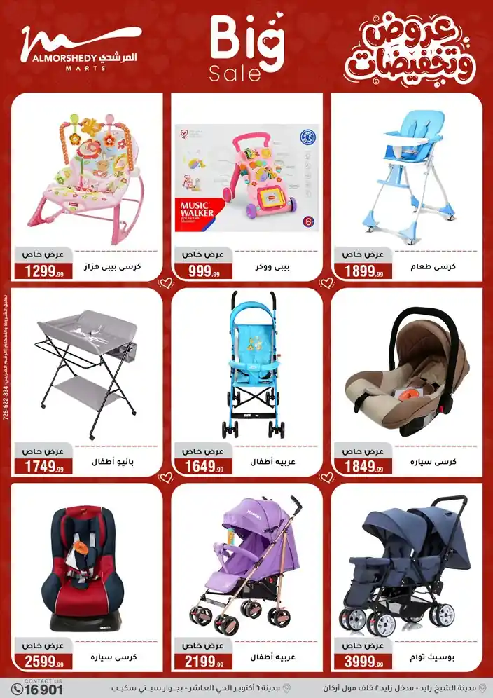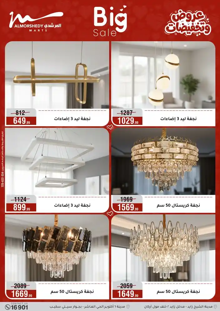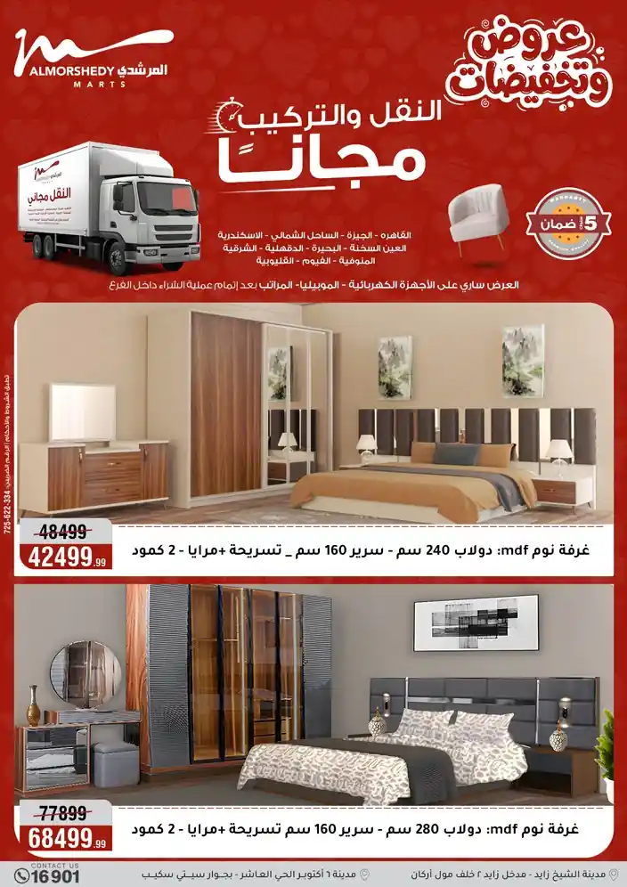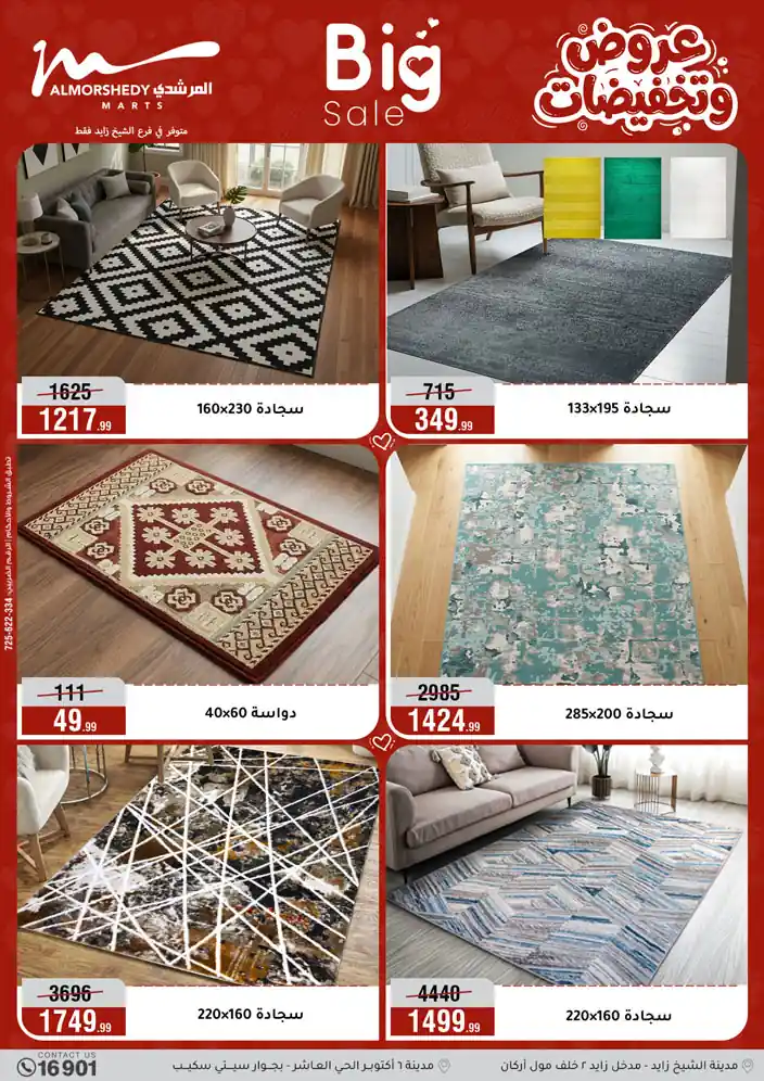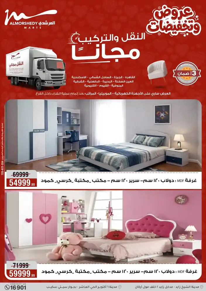 عروض جديدة من أسواق المرشدي مع اكبر مهرجان للتخفيضات في مصر خصومات حتى 70% وقسط براحتك بدون فوائد بأسعار العروض المخفضة على 12 شهر لحاملي بطاقة ائتمان CIB أو قسط براحتك مع VALU بدون مقدم حتى 60 شهر أو بدون مقدم وبدون فوائد مع نظام هاتريك وكمان النقل مجاني للقاهرة والجيزة والقليوبية على قسم الأجهزة الكهربائية والموبيليا والمراتب ( تطبق شروط المكان ) خصومات على جميع الأقسام أدوات منزلية – اجهزة كهربائية – مفروشات – موبيليا – نجف – سجاد – مراتب – ملابس رجالي وحريمي وأطفالي ومستلزمات ولعب الأطفال وجاليري وأقسام تانية كتير استمتع بالتسوق في أسواق المرشدي مع أكتر من 12 قسم و أكثر من 10,000 منتج يعني كل اللي بتحلم بيه عند المرشدي هتلاقيه