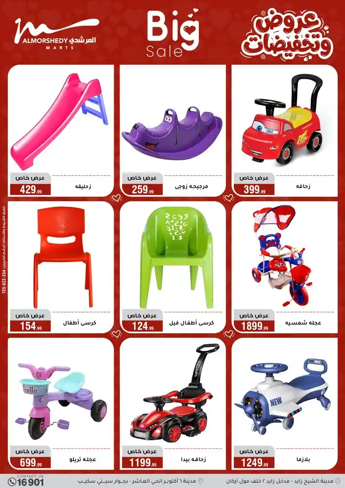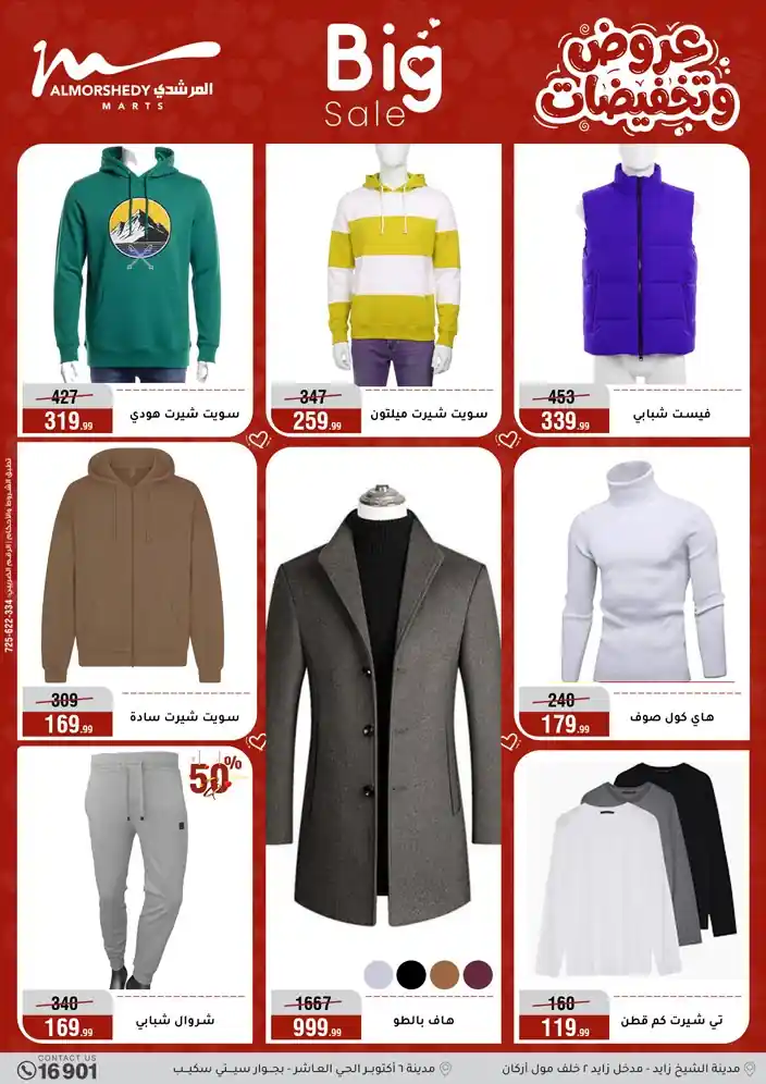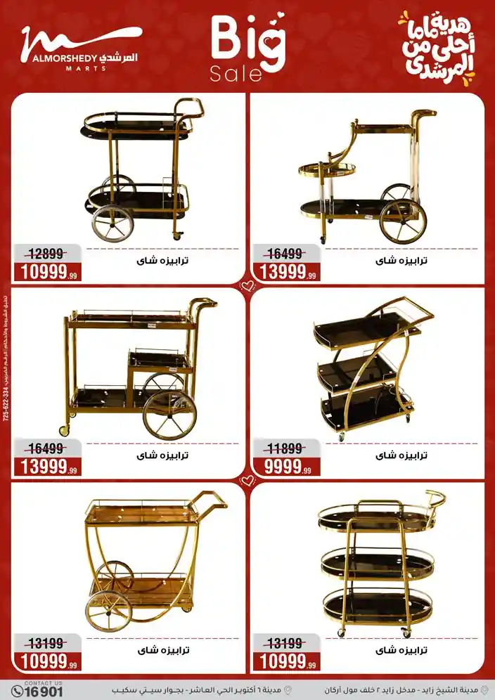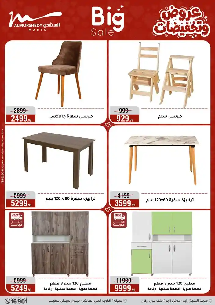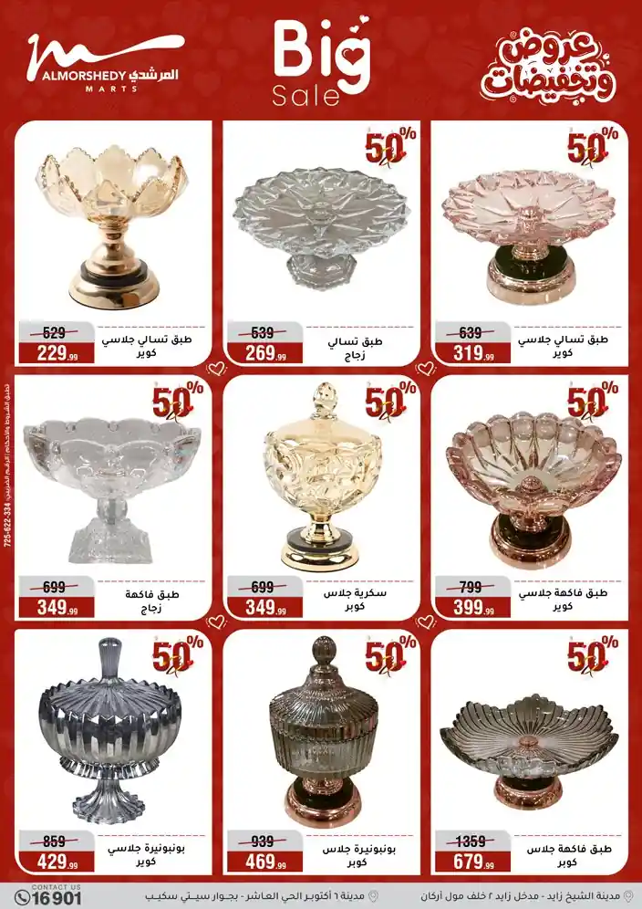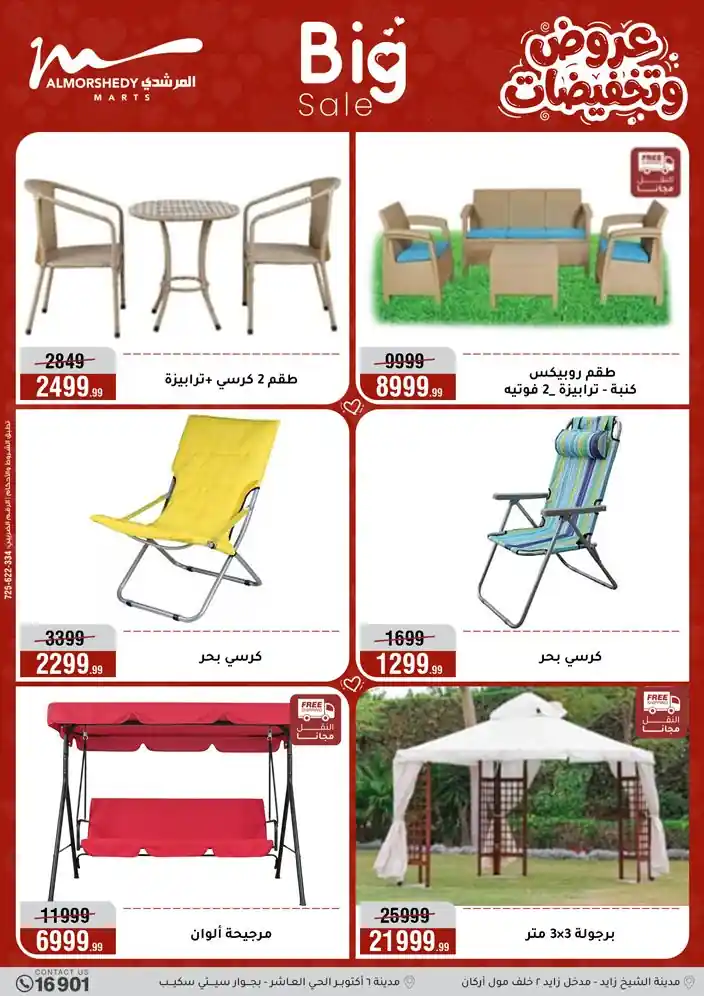 عروض جديدة من أسواق المرشدي مع اكبر مهرجان للتخفيضات في مصر خصومات حتى 70% وقسط براحتك بدون فوائد بأسعار العروض المخفضة على 12 شهر لحاملي بطاقة ائتمان CIB أو قسط براحتك مع VALU بدون مقدم حتى 60 شهر أو بدون مقدم وبدون فوائد مع نظام هاتريك وكمان النقل مجاني للقاهرة والجيزة والقليوبية على قسم الأجهزة الكهربائية والموبيليا والمراتب ( تطبق شروط المكان ) خصومات على جميع الأقسام أدوات منزلية – اجهزة كهربائية – مفروشات – موبيليا – نجف – سجاد – مراتب – ملابس رجالي وحريمي وأطفالي ومستلزمات ولعب الأطفال وجاليري وأقسام تانية كتير استمتع بالتسوق في أسواق المرشدي مع أكتر من 12 قسم و أكثر من 10,000 منتج يعني كل اللي بتحلم بيه عند المرشدي هتلاقيه