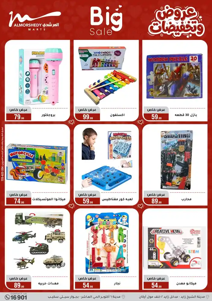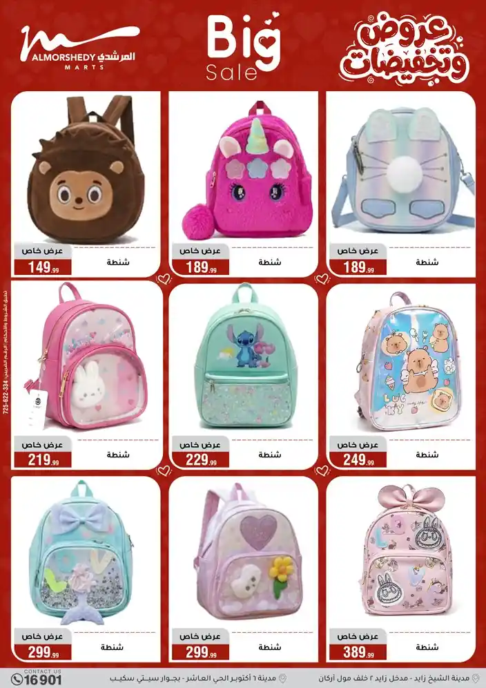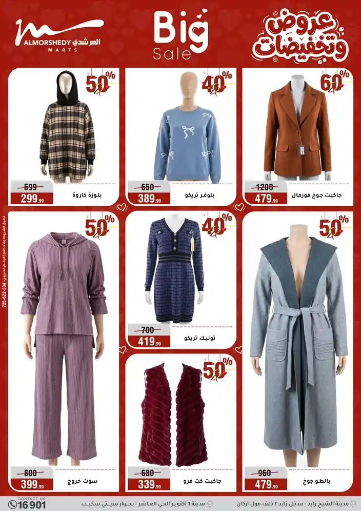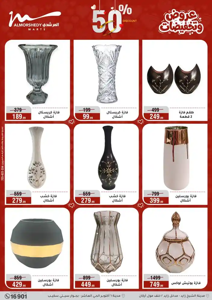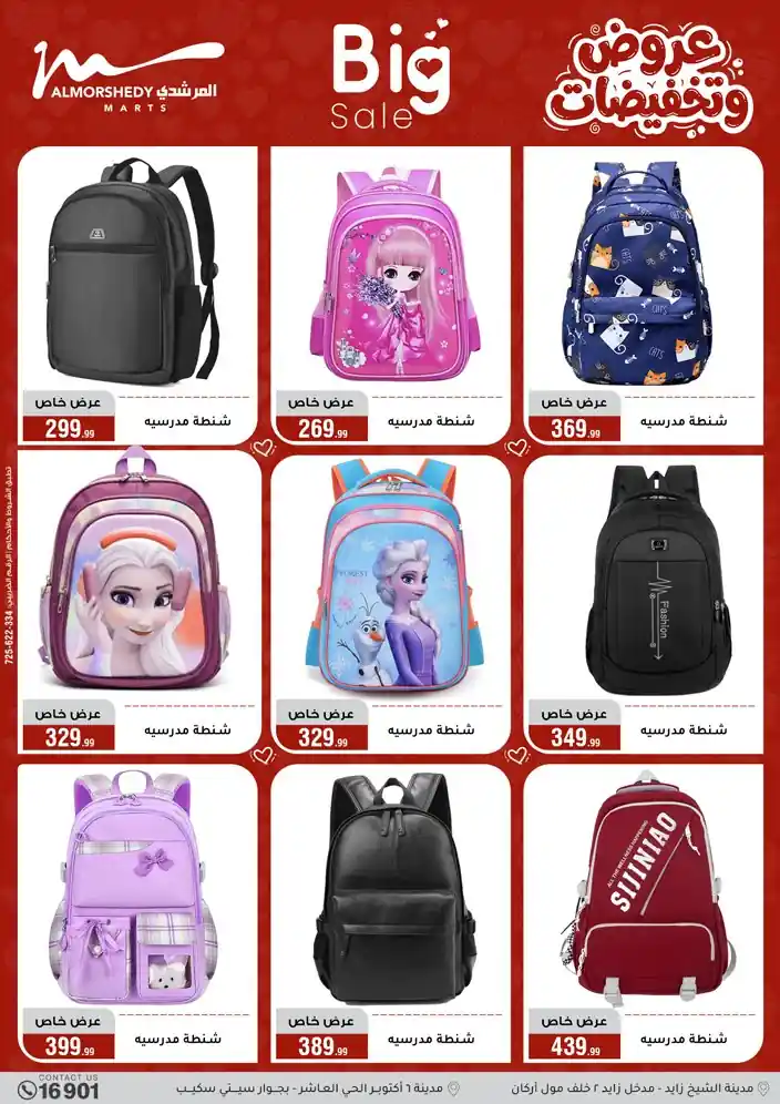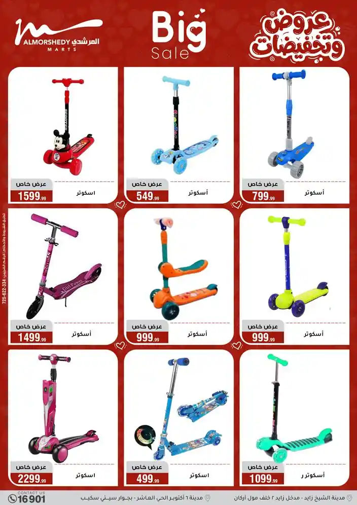 عروض جديدة من أسواق المرشدي مع اكبر مهرجان للتخفيضات في مصر خصومات حتى 70% وقسط براحتك بدون فوائد بأسعار العروض المخفضة على 12 شهر لحاملي بطاقة ائتمان CIB أو قسط براحتك مع VALU بدون مقدم حتى 60 شهر أو بدون مقدم وبدون فوائد مع نظام هاتريك وكمان النقل مجاني للقاهرة والجيزة والقليوبية على قسم الأجهزة الكهربائية والموبيليا والمراتب ( تطبق شروط المكان ) خصومات على جميع الأقسام أدوات منزلية – اجهزة كهربائية – مفروشات – موبيليا – نجف – سجاد – مراتب – ملابس رجالي وحريمي وأطفالي ومستلزمات ولعب الأطفال وجاليري وأقسام تانية كتير استمتع بالتسوق في أسواق المرشدي مع أكتر من 12 قسم و أكثر من 10,000 منتج يعني كل اللي بتحلم بيه عند المرشدي هتلاقيه