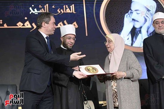نجله الشيخ محمود خليل الحصرى تتسلم التكريم