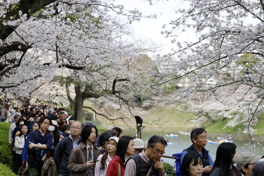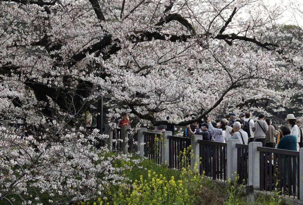 يستمتع الناس بمشاهدة أزهار الكرز