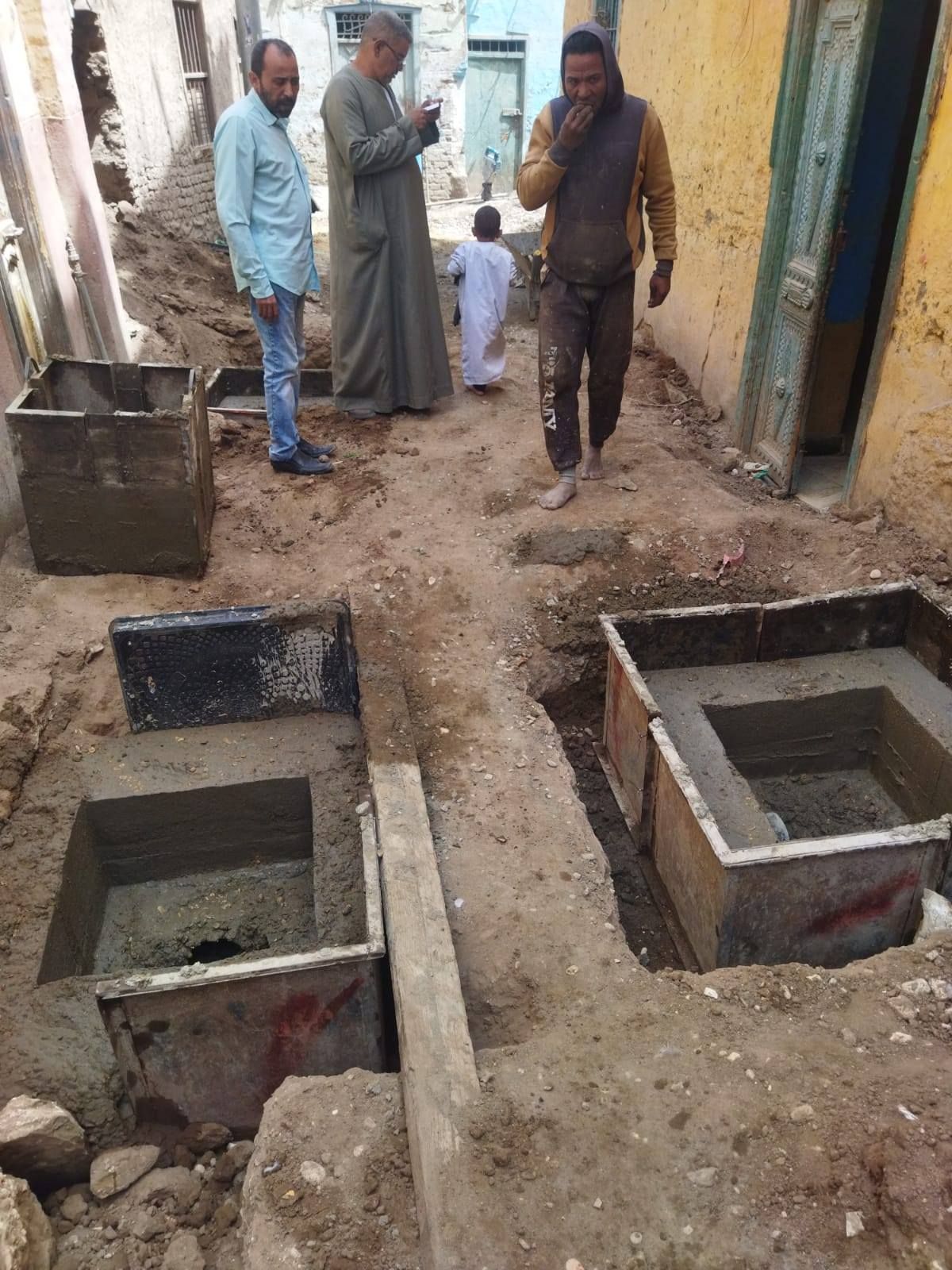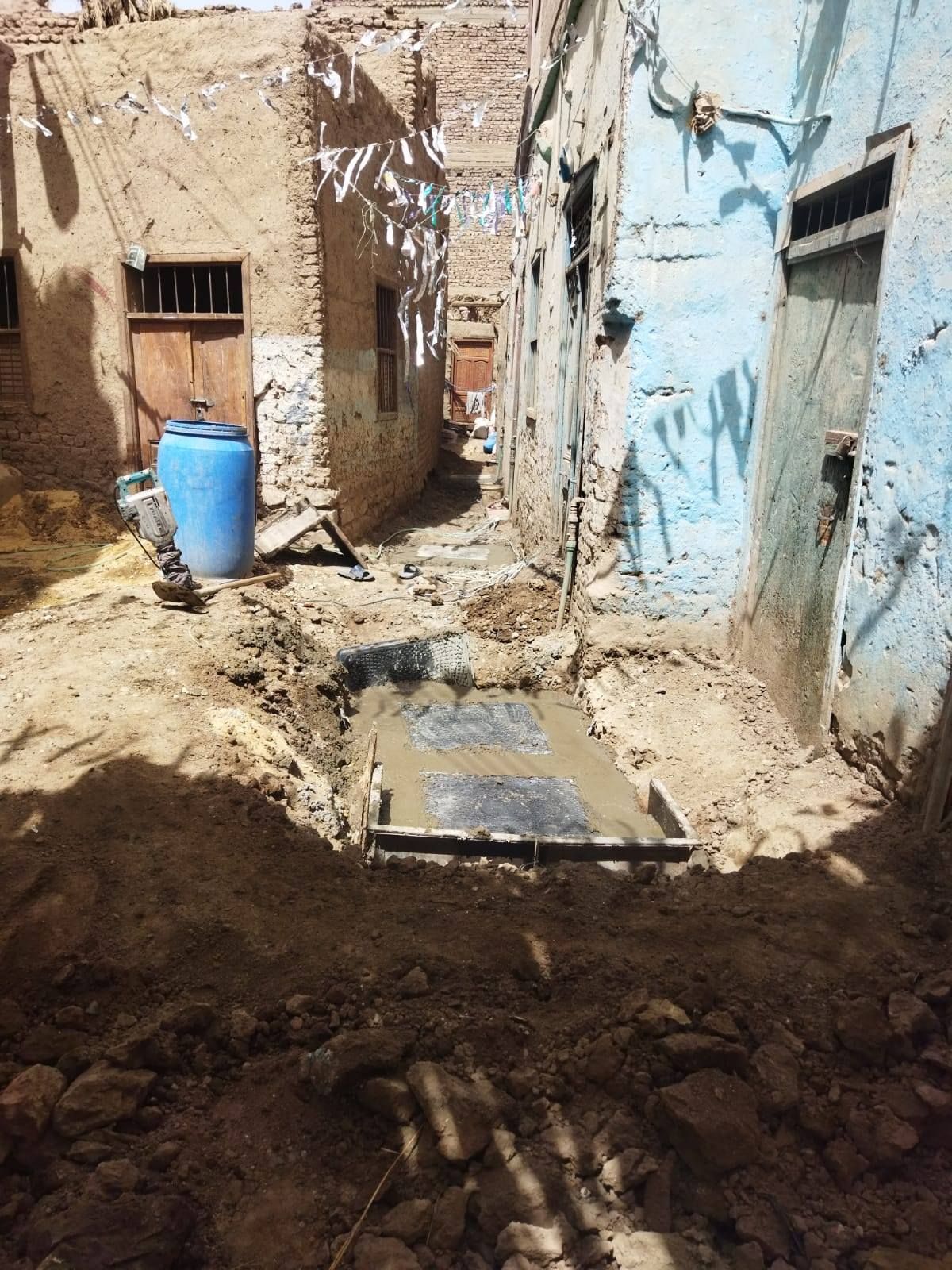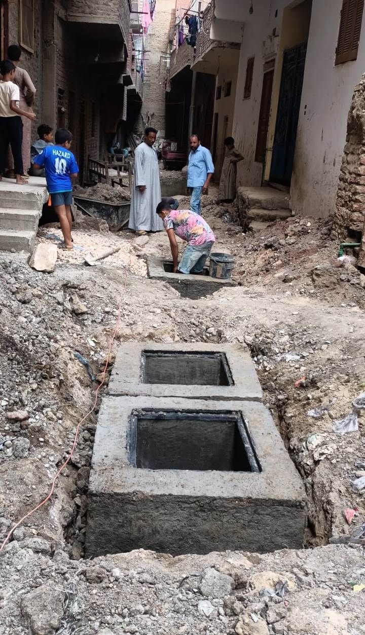 أعمال توصيل الغرف المنزلية للصرف الصحي بقرية ترعة ناصر جنوب إسنا