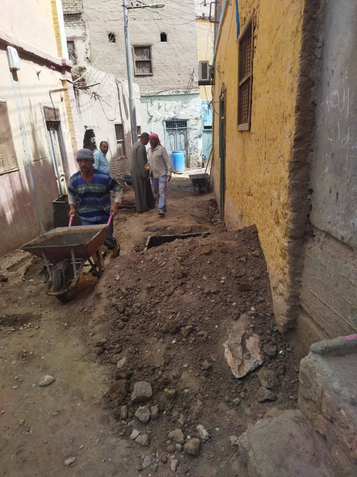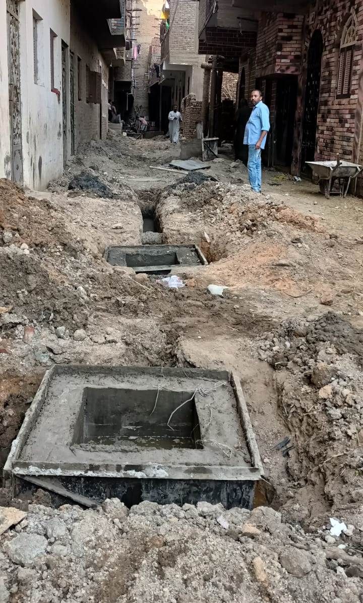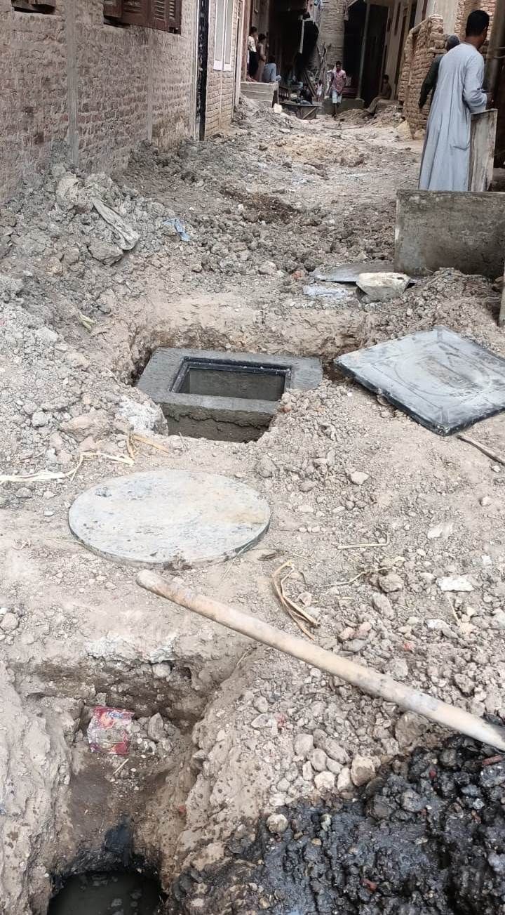 أعمال توصيل الغرف المنزلية للصرف الصحي بقرية ترعة ناصر فى إسنا