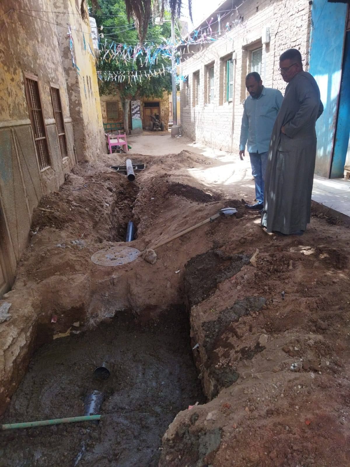 متابعة توصيل الغرف المنزلية للصرف الصحي بقرية ترعة ناصر جنوب إسنا