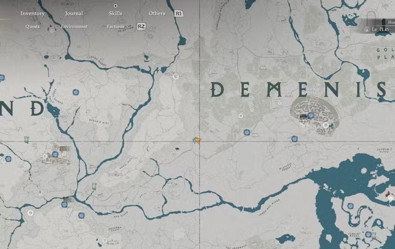 للوصول إلى الموقع يجب التوجه إلى جنوب الحرف D في اسم Demeniss على الخريطة حيث ستجد منطقة Riverbed Terrace التي تحتوي على عدد كبير من القبور بعد ذلك يجب البحث عن أطول قبر في الجهة الغربية من المنطقة حيث يمثل هذا القبر نقطة التفاعل الأساسية.