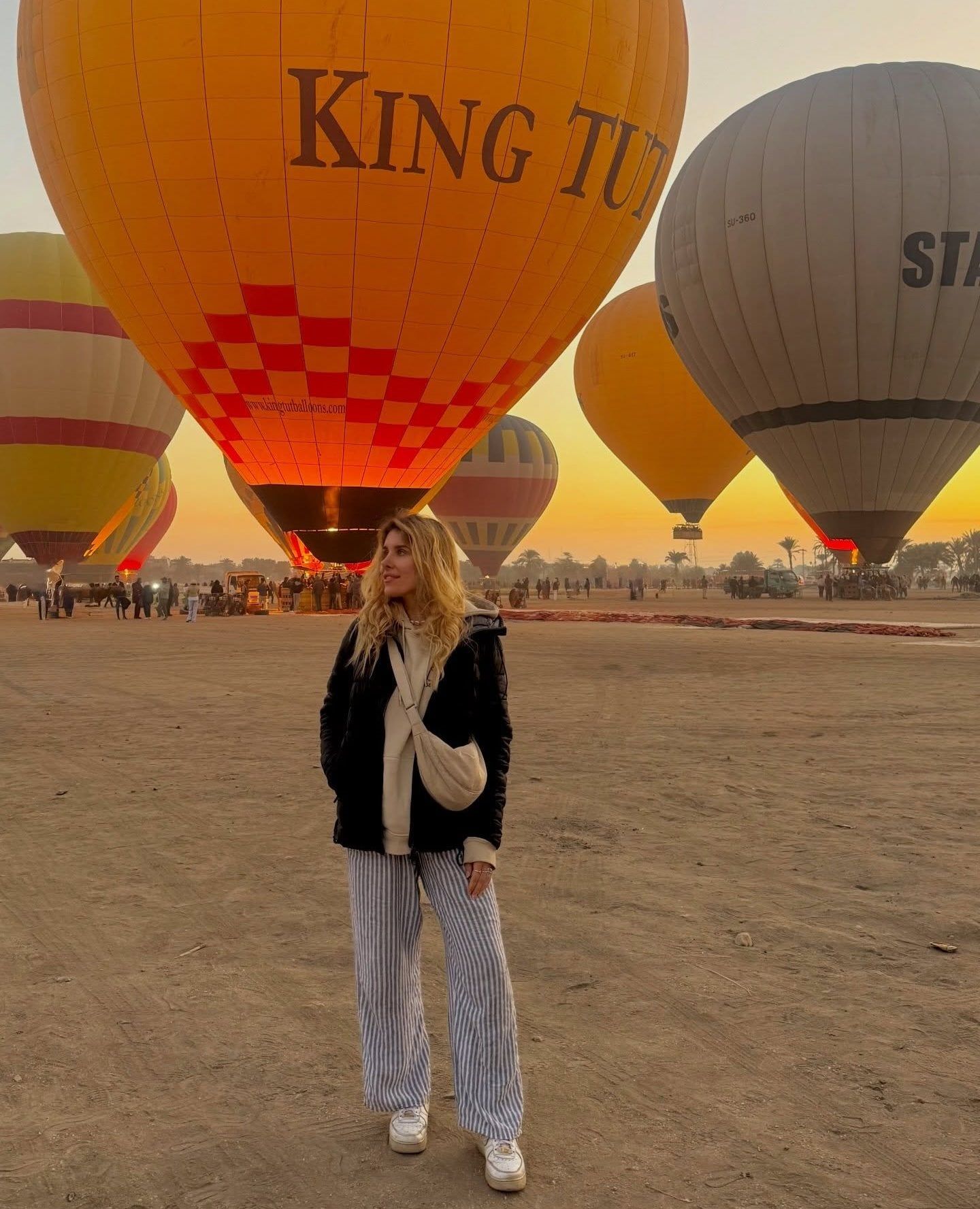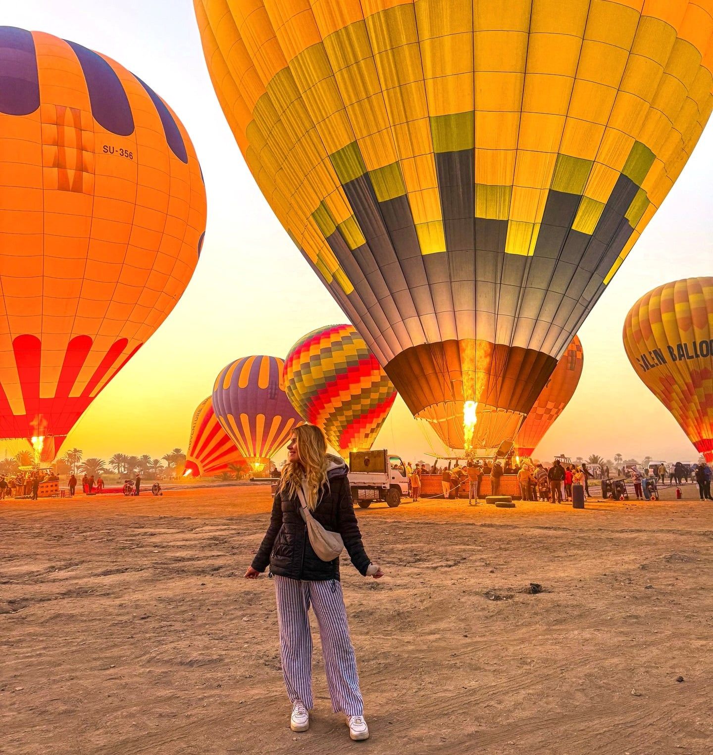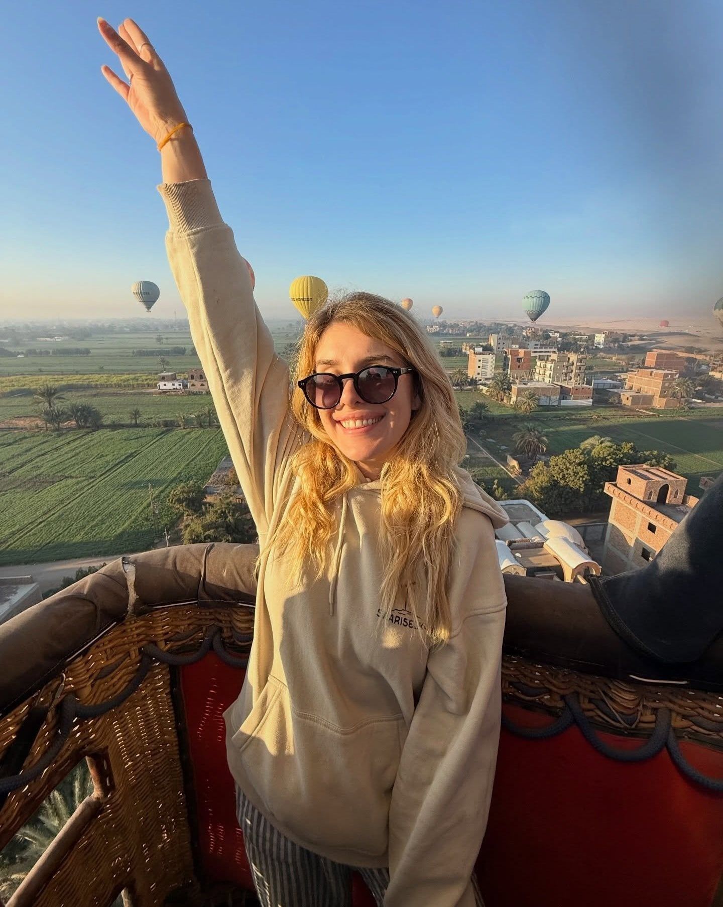 سائحة تستمتع فى قلب رحلة البالون الطائر بالأقصر