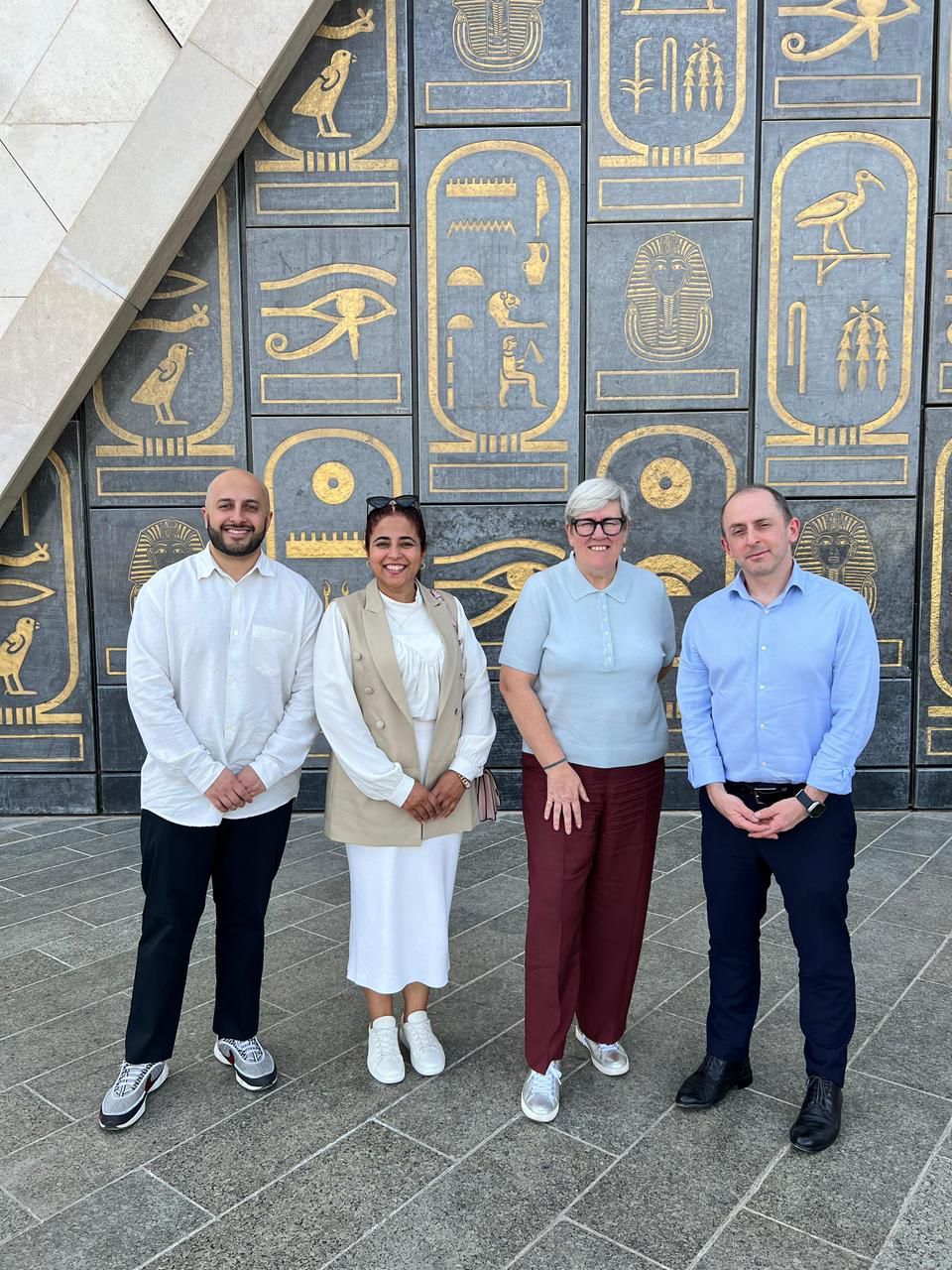 كانت إحدى أبرز محطات زيارتها المتحف المصري الكبير. يتميز المتحف بكونه نموذجًا رائعًا للهندسة المعمارية المستدامة، لا سيما مع حصوله على شهادة EDGE Advanced المدعومة من المملكة المتحدة، والتي تُبرز كيف يمكن للبناء الحديث الحفاظ على التراث مع دعم الأهداف البيئية.