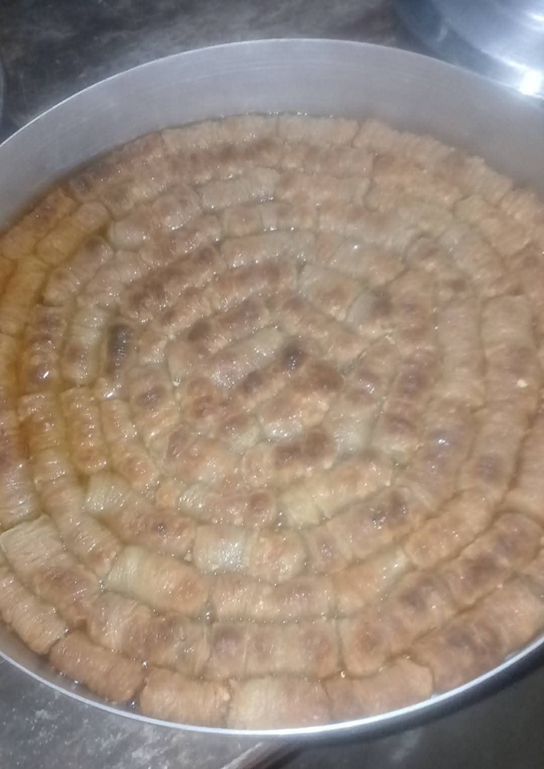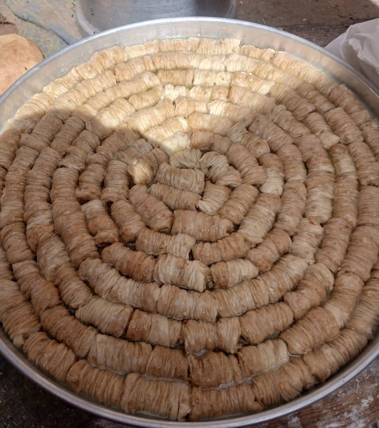 وأشارت، إلى أن طريقة صناعتها قد تختلف من مكان إلى آخر، لكن الطريقة الأساسية المتشابهة مع الطريقة التركية، التي يطلقون عليها "رقبة الجدة"، تبدأ بعجن مكونات العجينة وتركها لمدة ربع ساعة، ثم تحشى وتلف على عود خشبي حتى تأخذ شكل الرقبة، وتدهن بالسمن وتوضع في الفرن، وبعد خروجها تسقى بالشربات مباشرة.