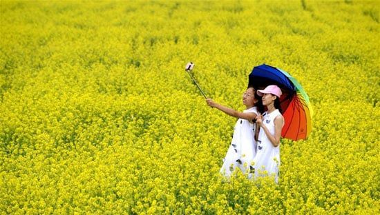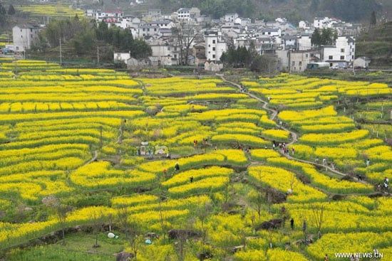 تتوافد السياح الى حقول السلجم المتفتحة مع حول فصل الربيع للاستمتاع بالطبيعة الساخرة الخلابة بألونها الذهبى الذى يخطف القلب فيما يلتقط الزوار الصور التذكارية داخل الحقول المتفتحة.