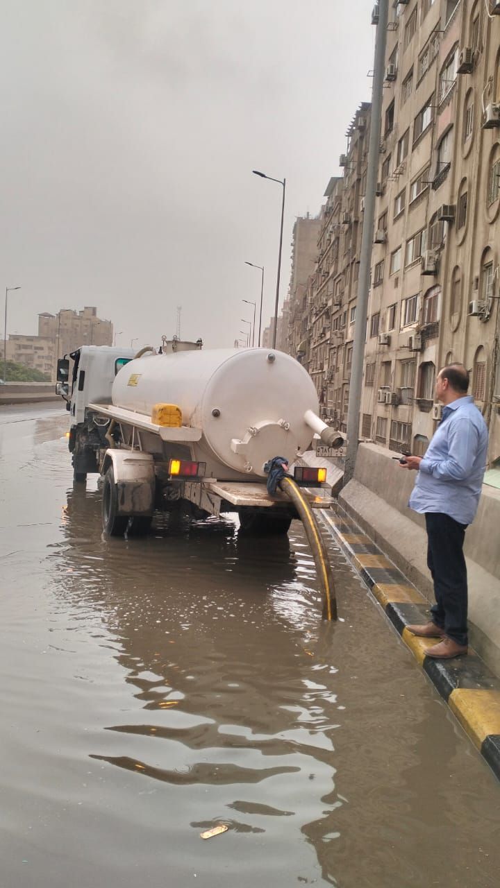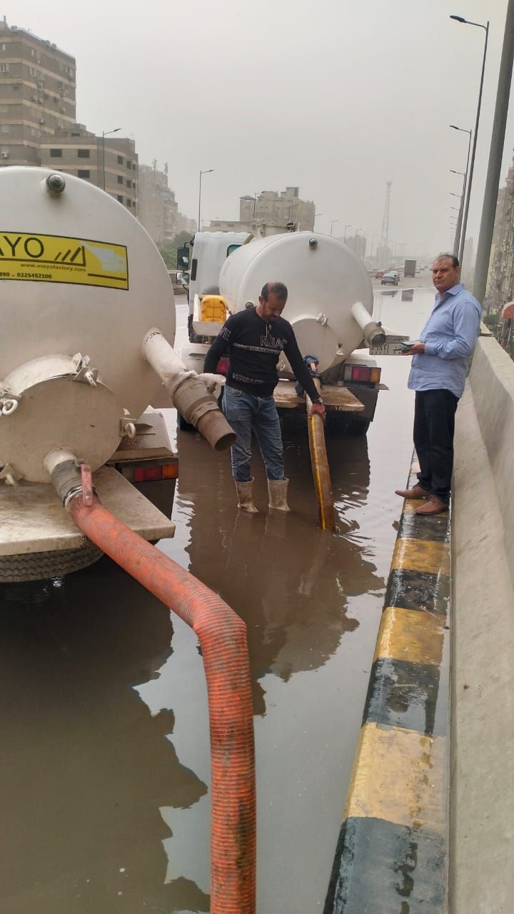 الخميس، 02 أبريل 2026 11:06 صقامت الأجهزة المعنية عمليات سحب وتصفية لمياة الأمطار التى ظهرت بعدد من الشوارع وميادين محافظة القاهرة والجيزة وببعض المحاور للعمل على إزالة المياه وإعادة الحركة المرورية لطبيعتها مرة أخرى وحفاظا على أرواح المواطنين حيث يتم سحب المياه من جميع الأماكن التى يتم رصدها لمنع الحوادث .