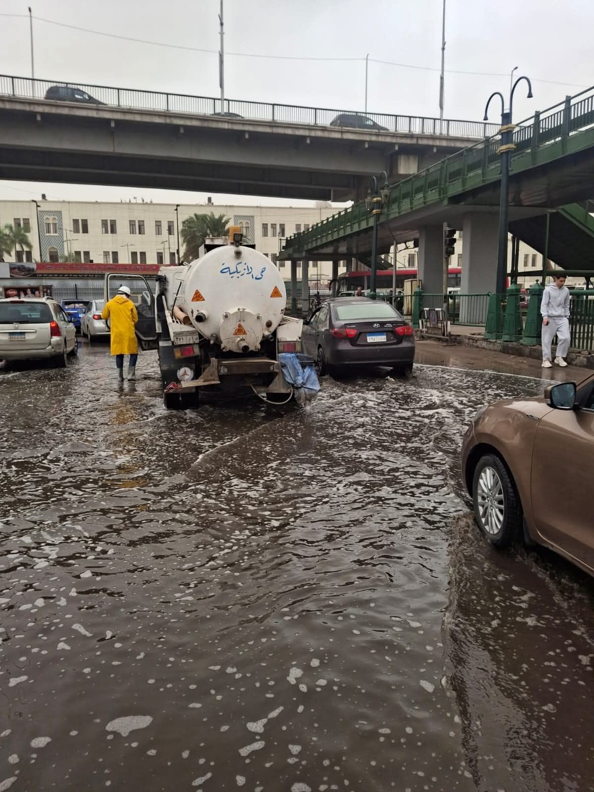 الخميس، 02 أبريل 2026 12:16 مقامت الأجهزة المعنية عمليات سحب وتصفية لمياة الأمطار التى ظهرت بعدد من الشوارع وميادين محافظة القاهرة وببعض المحاور للعمل على إزالة المياه وإعادة الحركة المرورية لطبيعتها مرة أخرى على الرغم من ظهور رياح مثيرة للأتربة وحفاظا على أرواح المواطنين حيث يتم سحب المياه من جميع الأماكن التى يتم رصدها لمنع الحوادث .