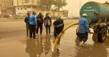 الخميس، 02 أبريل 2026 01:23 متواصل الأجهزة التنفيذية بـ محافظة الشرقية، جهودها المكثفة من خلال انتشار معدات وسيارات كسح وشفط مياة الأمطار بالشوارع والطرق والمحاور الرئيسية ومداخل ومخارج المدن وبخاصة المناطق المنخفضة وكذلك بالأنفاق والكباري العلوية لسرعة شفط مياه الأمطار أولًا بأول لفتح الطرق أمام حركة السيارات والمواطنين وتحقيق السيولة المرورية.