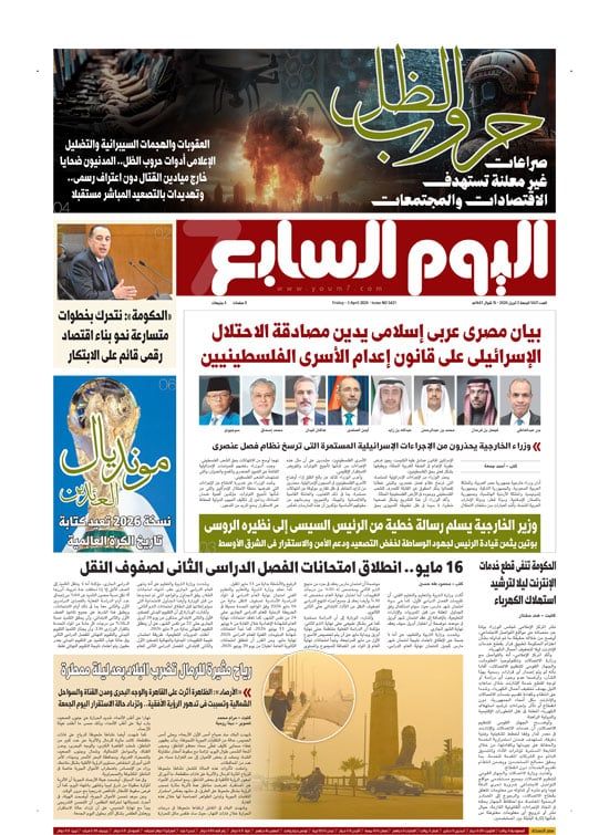 حروب الظل.. صراعات غير معلنة تستهدف الاقتصادات والمجتمعات.. العقوبات والهجمات السيبرانية والتضليل الإعلامى أدوات حروب الظل.. المدنيون ضحايا خارج ميادين القتال دون اعتراف رسمى.. وتهديدات بالتصعيد المباشر مستقبلابيان مصرى عربى إسلامى يدين مصادقة الاحتلال الإسرائيلى على قانون إعدام الأسرى الفلسطينيين.. وزراء الخارجية يحذرون من الإجراءات الإسرائيلية المستمرة التى ترسخ نظام فصل عنصرى
