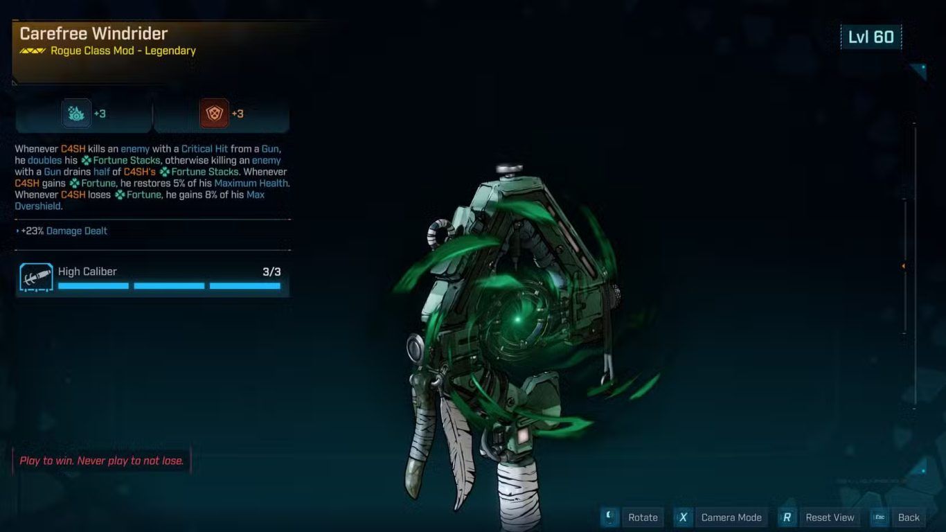 يعد Windrider من أهم قطع Class Mod التي يمكن تجهيزها مع بناء Cleromancy لشخصية C4SH بل يمكن اعتباره خيارا أساسيا يصعب الاستغناء عنه إذا كان الهدف هو الوصول إلى أقصى قدر ممكن من الكفاءة والاستمرارية. والسبب في ذلك أن هذه القطعة لا تقدم فائدة واحدة فقط بل تجمع بين أكثر من تأثير محوري ينسجم بصورة مباشرة مع الفكرة الأساسية للبناء كله. فهي تتعامل مع Fortune Stacks بطريقة تجعل كسبها وخسارتها معا أمرا مفيدا وتمنح اللاعب قدرة أكبر على الحفاظ على الزخم الهجومي والدفاعي في الوقت نفسه.