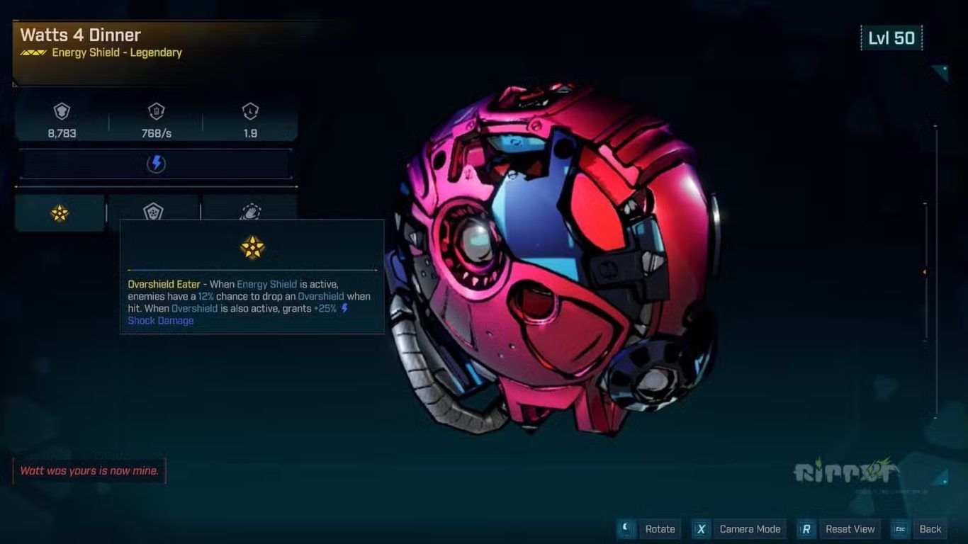 وهذه العلاقة بين الحماية والضرر هي بالضبط ما يجعل Watts 4 Dinner مناسبا جدا لهذا البناء. فC4SH في مسار Cleromancy لا يريد فقط أن ينجو من الضرر بل يريد أن يستفيد منه وأن يبني من خلاله زخما متصاعدا. وعندما يوفر الدرع فرصة إضافية للحصول على Overshield ثم يكافئك بزيادة ضرر Shock عند الحفاظ عليها فإنه يصبح أكثر من مجرد طبقة دفاعية ويغدو قطعة عتاد تدعم جوهر البناء نفسه من كل زاوية تقريبا.