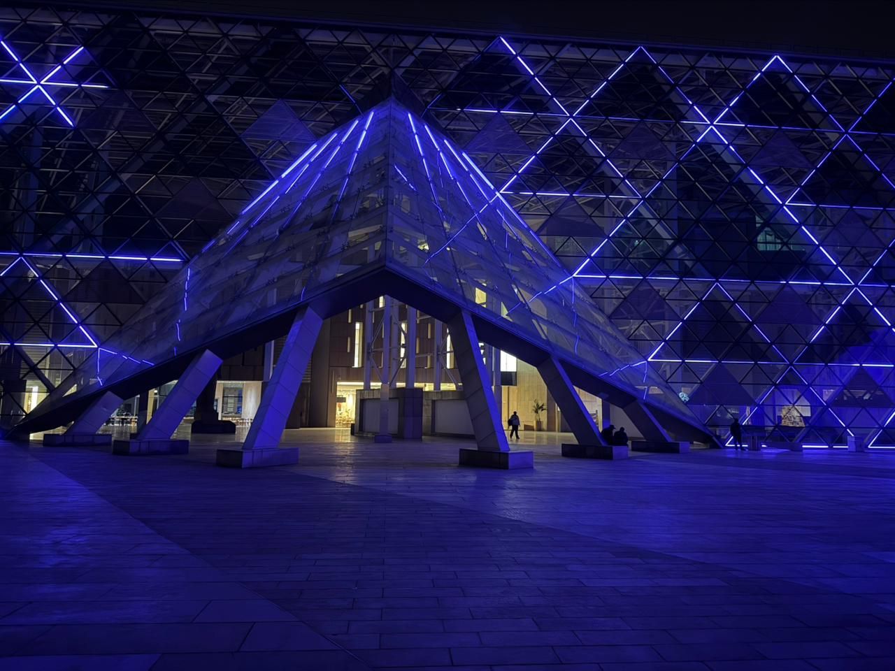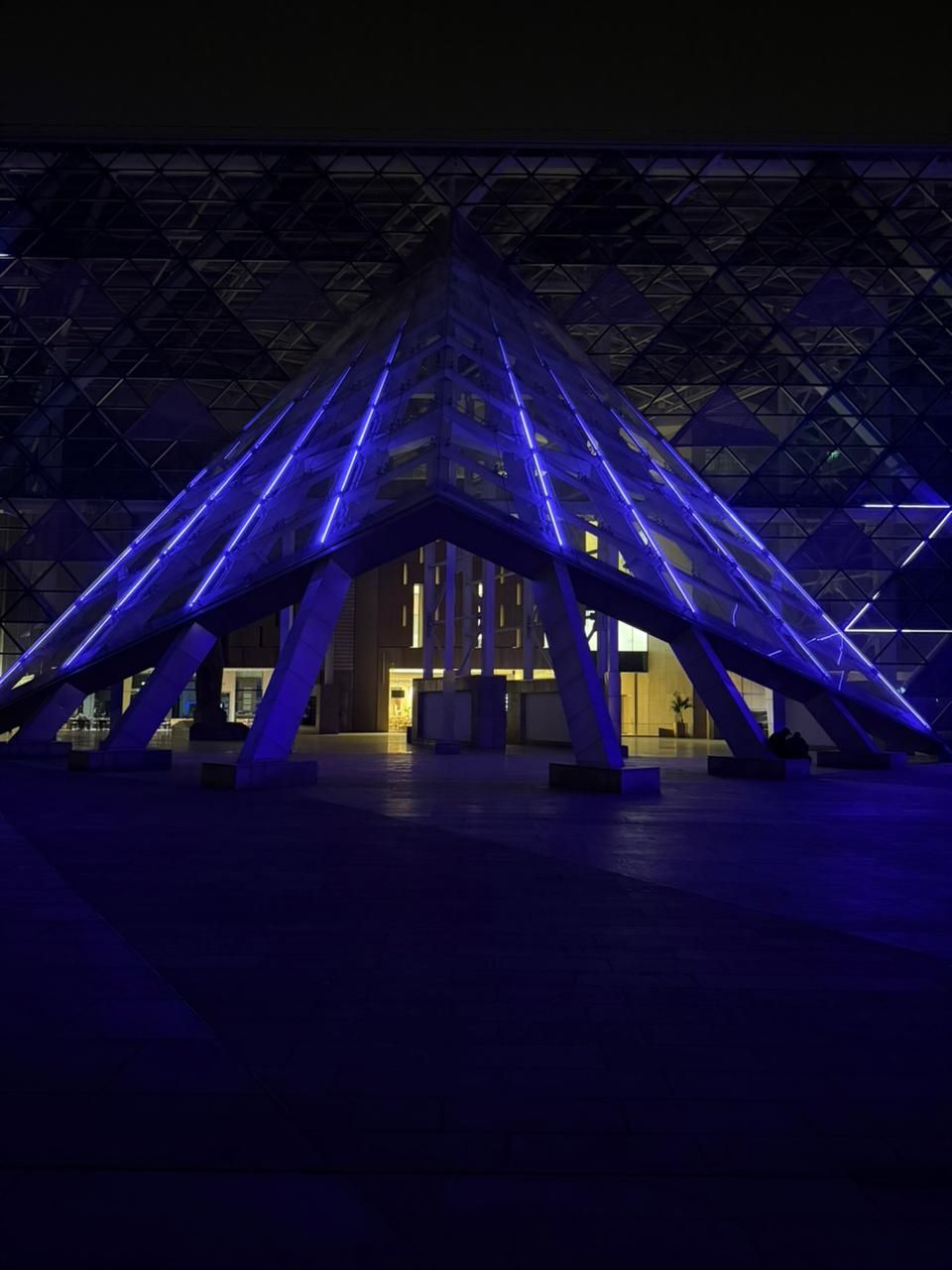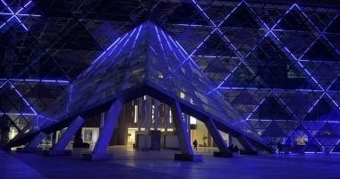 المتحف المصري الكبير يُضيء واجهته باللون الأزرق
