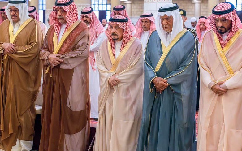وأدى الصلاة مع سموه صاحب السمو الملكي الأمير تركي بن فيصل بن عبدالعزيز، وصاحب السمو الملكي الأمير خالد بن بندر بن عبدالعزيز مستشار خادم الحرمين الشريفين، وصاحب السمو الملكي الأمير متعب بن عبدالله بن عبدالعزيز، وصاحب السمو الملكي الأمير فيصل بن خالد بن عبدالعزيز مستشار خادم الحرمين الشريفين، وصاحب السمو الملكي الأمير محمد بن نواف بن عبدالعزيز مستشار خادم الحرمين الشريفين، وصاحب السمو الملكي الأمير سلطان بن سلمان بن عبدالعزيز المستشار الخاص لخادم الحرمين الشريفين، وصاحب السمو الأمير فيصل بن عبدالله بن محمد، وصاحب السمو الأمير محمد بن عبدالله بن محمد بن عبدالرحمن، وصاحب السمو الأمير الدكتور تركي بن سعود بن محمد، وصاحب السمو الأمير نواف بن محمد بن عبدالله بن عبدالرحمن، وصاحب السمو الأمير سعود بن سلمان بن محمد، وصاحب السمو الأمير أحمد بن عبدالله بن عبدالرحمن، وصاحب السمو الملكي الفريق الركن تركي بن بندر بن عبدالعزيز قائد القوات الجوية الملكية السعودية، وصاحب السمو الملكي الأمير مشعل بن محمد بن سعود بن عبدالعزيز، وصاحب السمو الأمير خالد بن سعود بن خالد بن محمد بن عبدالرحمن، وصاحب السمو الملكي الأمير فيصل بن سلمان بن عبدالعزيز المستشار الخاص لخادم الحرمين الشريفين، وصاحب السمو الأمير محمد بن سعود بن خالد بن محمد بن عبدالرحمن، وصاحب السمو الأمير محمد بن سعد بن خالد، وصاحب السمو الملكي الأمير فيصل بن تركي بن عبدالعزيز المستشار بالديوان الملكي، وصاحب السمو الأمير بندر بن سعد بن خالد، وصاحب السمو الأمير سعود بن عبدالله بن محمد، وصاحب السمو الأمير نواف بن سعد بن عبدالله، وصاحب السمو الملكي الأمير محمد بن فيصل بن بندر بن عبدالعزيز، وصاحب السمو الملكي الأمير بندر بن خالد بن فيصل بن عبدالعزيز رئيس مجلس إدارة هيئة الفروسية، وصاحب السمو الملكي الأمير بندر بن فهد بن محمد بن عبدالعزيز، وصاحب السمو الملكي الأمير محمد بن سعود بن فيصل بن عبدالعزيز، وصاحب السمو الملكي الأمير عبدالله بن متعب بن عبدالله بن عبدالعزيز، وصاحب السمو الملكي الأمير عبدالله بن سلطان بن ناصر بن عبدالعزيز، وصاحب السمو الملكي الأمير مشعل بن سلطان بن عبدالعزيز، وصاحب السمو الملكي الأمير خالد بن سعود بن فيصل بن عبدالعزيز، وصاحب السمو الملكي الأمير سلمان بن خالد بن سلطان بن عبدالعزيز، وصاحب السمو الملكي الأمير فهد بن سعود بن فيصل بن عبدالعزيز، وصاحب السمو الملكي الأمير سلمان بن سلطان بن سلمان بن عبدالعزيز.