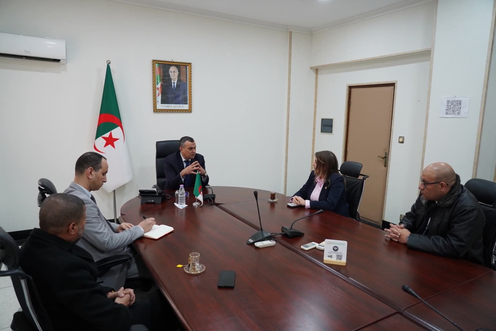 وحضر الاجتماع المديرة العامة لمؤسسة بريد الجزائر، شيراز بشيري، والأمين العام للفيدرالية الوطنية لعمال البريد والمواصلات السلكية واللاسلكية، محمد بوروبة. والأمين العام لنقابة البريد، محمد مهدي بورايو.