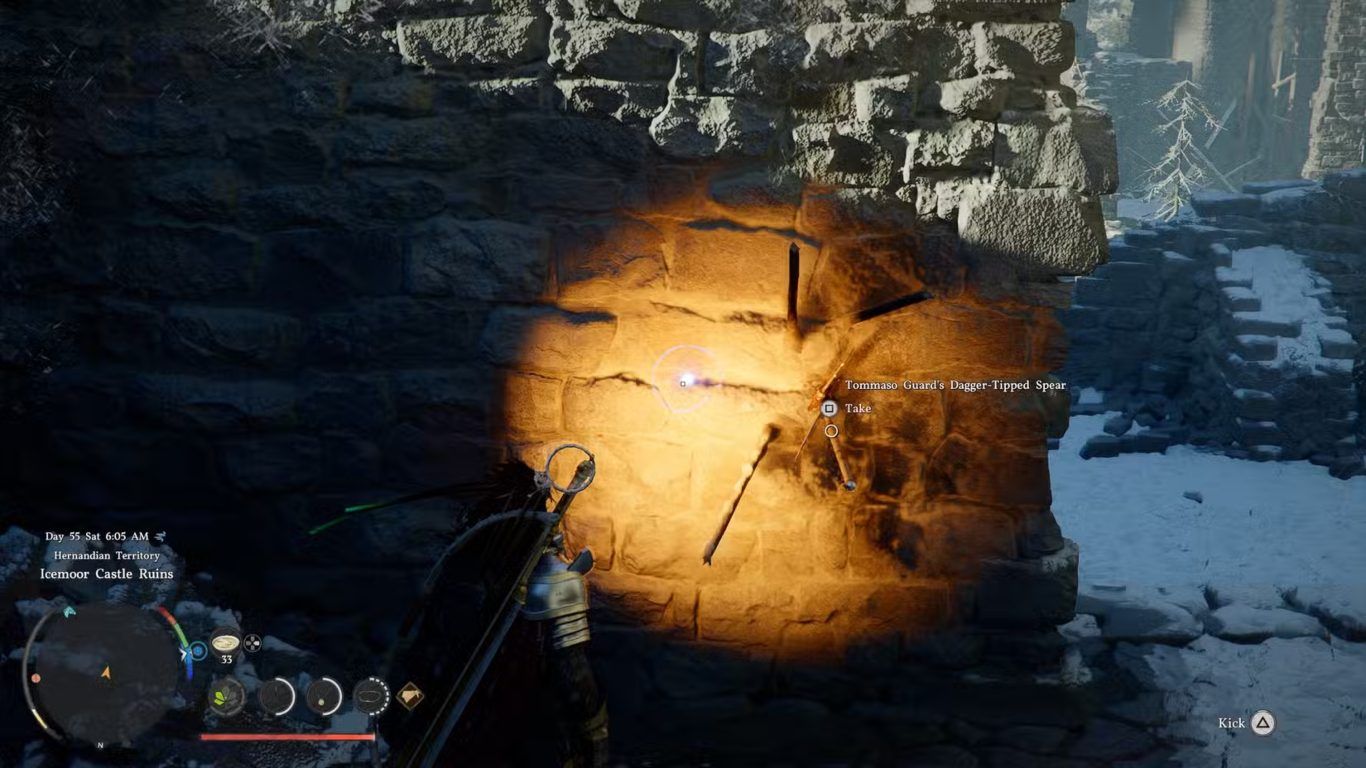 ويعكس هذا النوع من توزيع الكنوز في Crimson Desert فكرة الاستكشاف الدقيق الذي تكافئ عليه اللعبة بشكل واضح. ففي بعض الأحيان لا تضع اللعبة العناصر القيمة في مواقع بعيدة عن بعضها بل تترك أكثر من مكافأة في موضع واحد لتشجع اللاعب على الفحص الجيد وعدم التسرع. ومن هنا فإن العثور على Sydmon Spear بعد الوصول إلى Tommaso Guard’s Dagger Tipped Spear يمنح اللاعب شعورا بأن الانتباه للتفاصيل داخل البيئة المحيطة يمكن أن يؤدي إلى مكاسب إضافية دون عناء كبير.