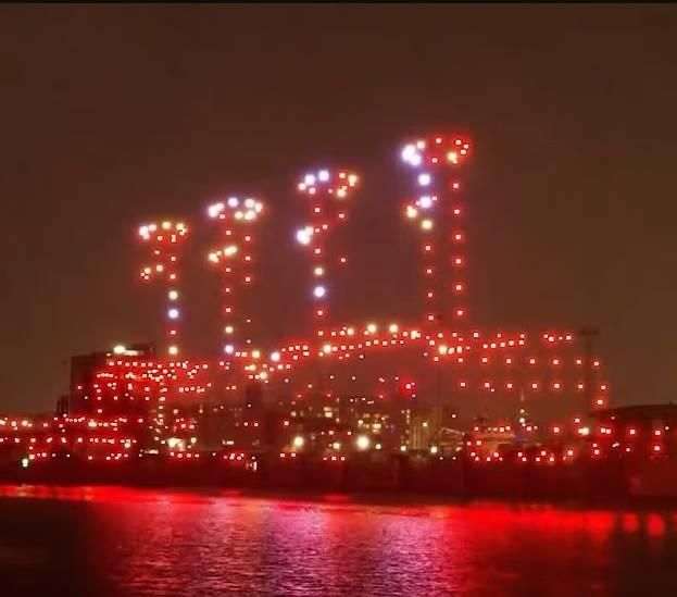 شهد ميناء بلفاست بإيرلندا عرضاً ضوئياً، بمشاركة ألف درون شكلت مشهداً مستوحى من السفينة الشهيرة تيتانيك.