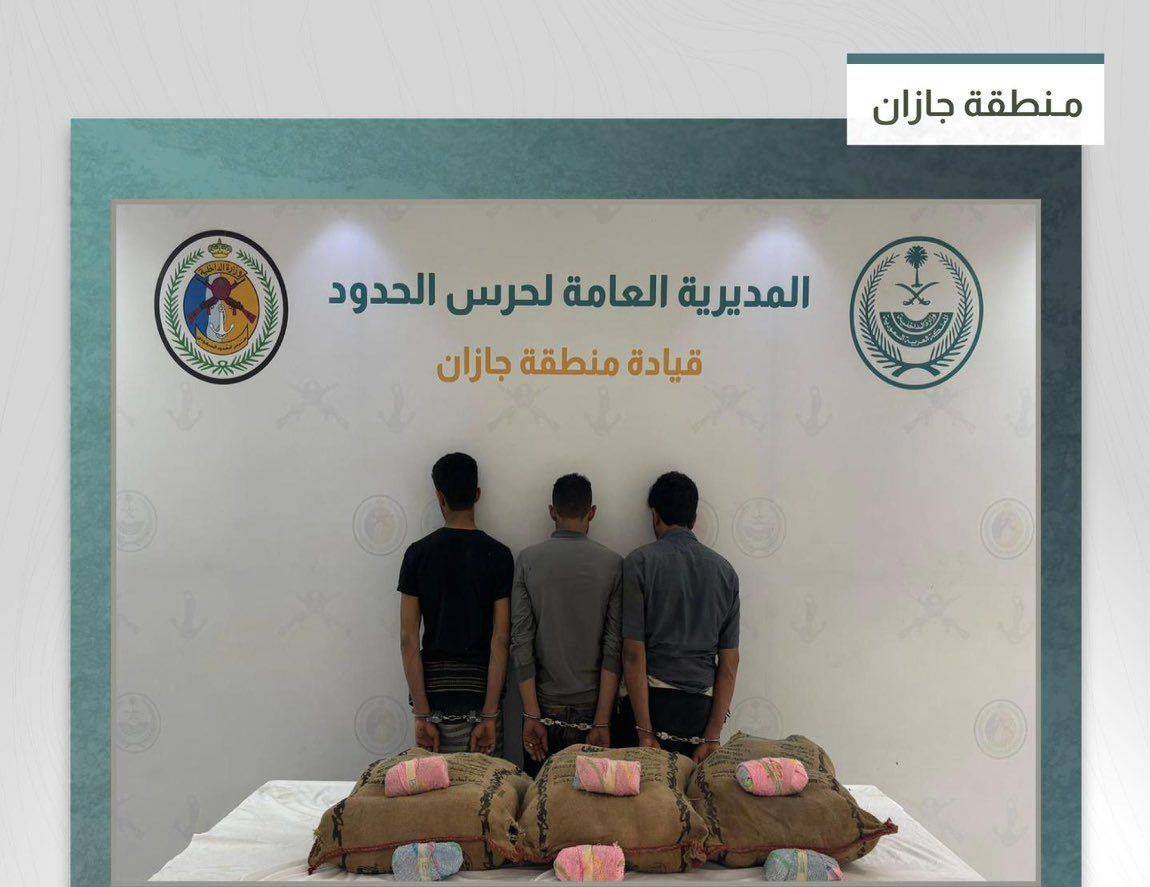 قبضت الدوريات البرية لحرس الحدود في قطاع الدائر بمنطقة جازان على 3 مخالفين لنظام أمن الحدود من الجنسية اليمنية، لتهريبهم (60) كيلوجراما من القات المخدر.