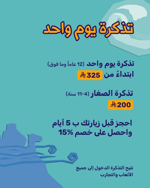 ويمكن الاطلاع على تفاصيل التذاكر من خلال الرابط التالي: https://aquarabiaqiddiyacity.com/ar/tickets-passes