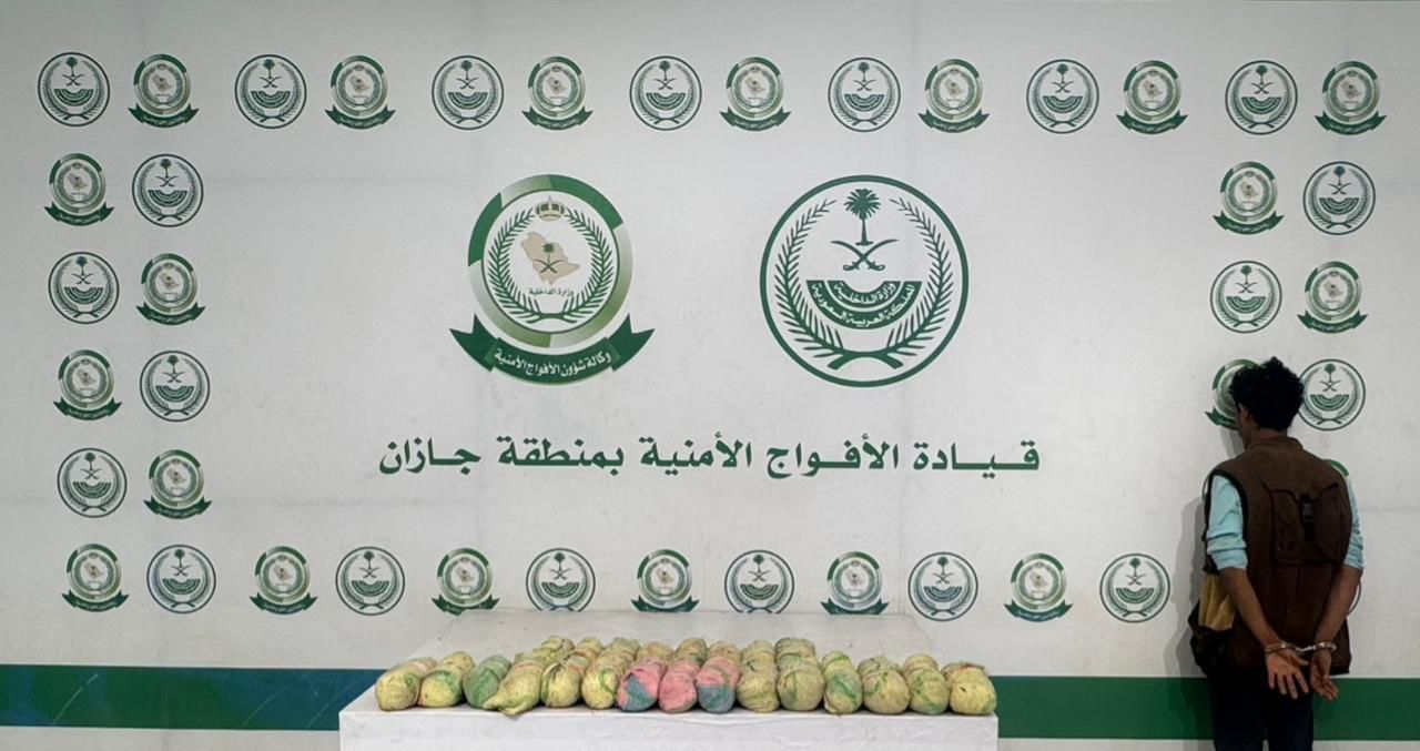 قبضت دوريات الأفواج الأمنية بمنطقة جازان على مخالف لنظام أمن الحدود من الجنسية اليمنية لتهريبه (9) كيلو جرامات من نبات القات المخدر بمحافظة العارضة، وتم إيقافه واتخاذ الإجراءات النظامية بحقه, وإحالته لجهة الاختصاص.