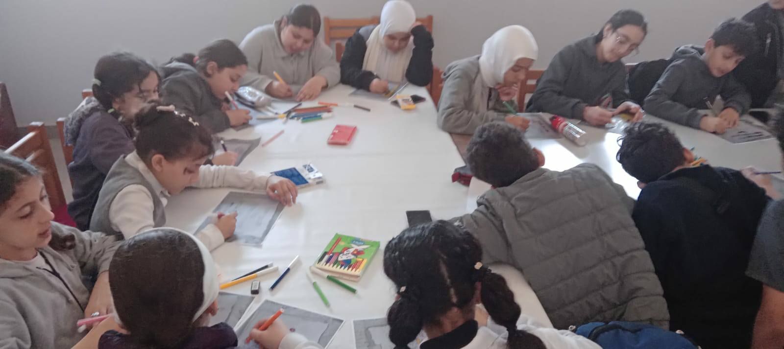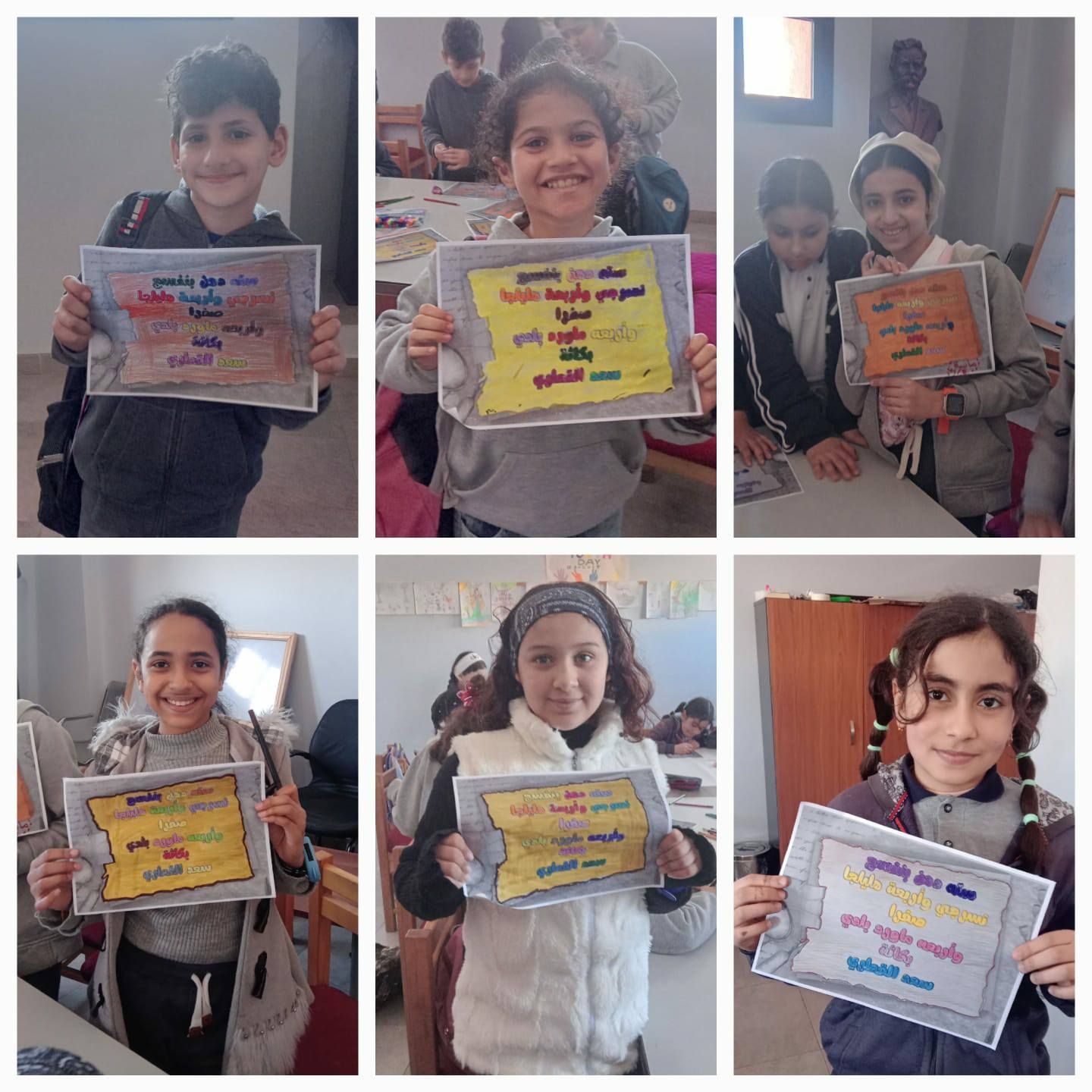 أعمال الأطفال خلال ورشة العمل احتفالا بيوم المخطوط العربي