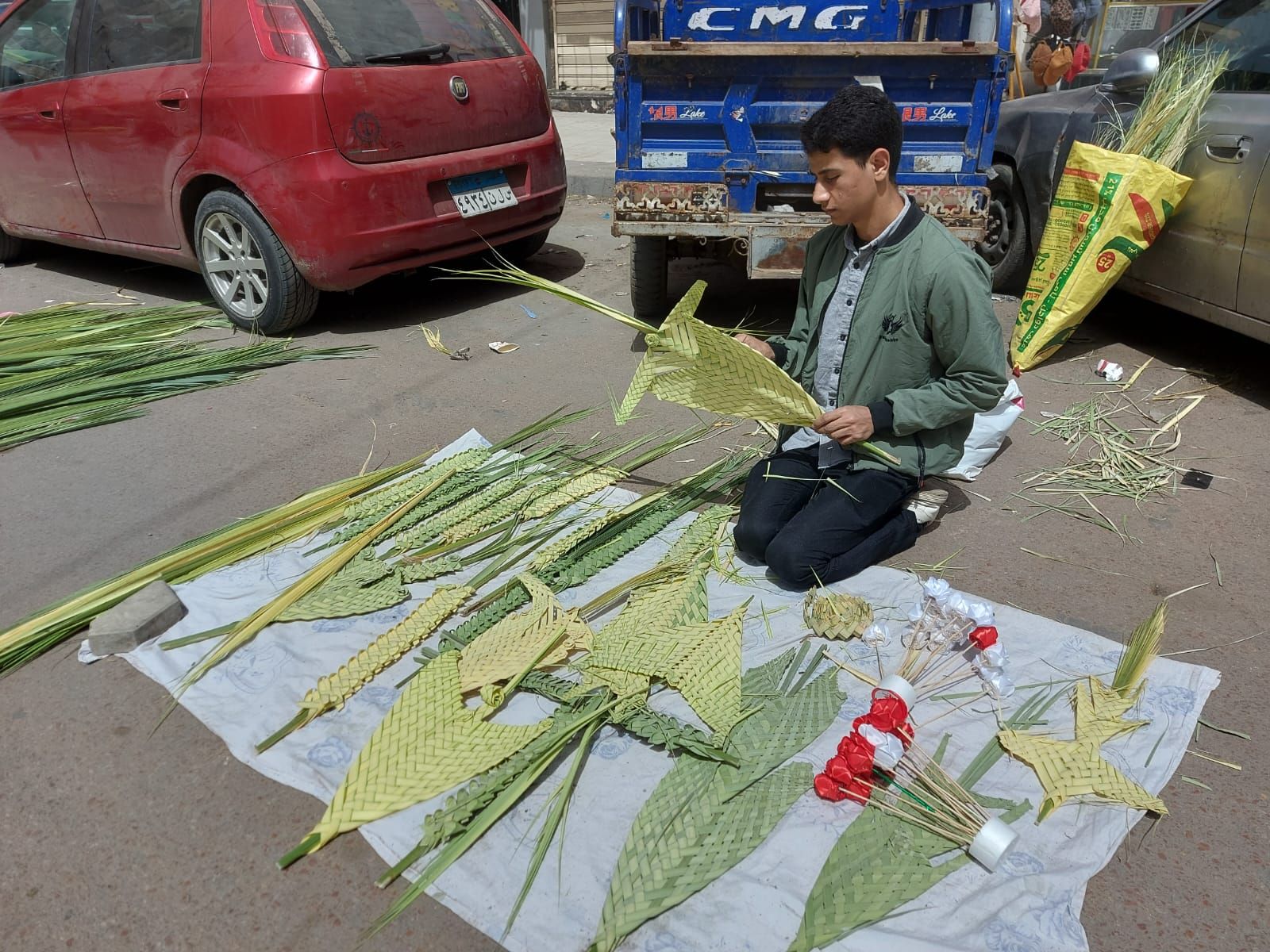 انتشار بائعى الزعف المضفر بشوارع الإسكندرية أمام الكنائس