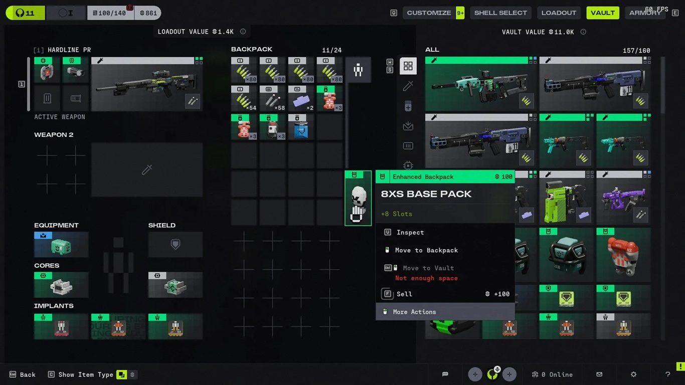 يحدد حجم حقيبة ظهرك عدد العناصر التي يمكنك حملها أثناء الجري. حقيبة الظهر الافتراضية صغيرة نوعًا ما، ولكن يمكنك توسيعها باستخدام النسخ المطورة. يمكنك شراء حقائب الظهر المحسّنة من مستودع الأسلحة. كما يمكنك الحصول عليها من خلال إكمال عقود معينة، أو الوصول إلى مستويات رتبة شخصية محددة، وغير ذلك.