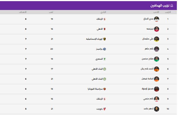 جدول ترتيب هدافى بطولة الدورى الممتاز