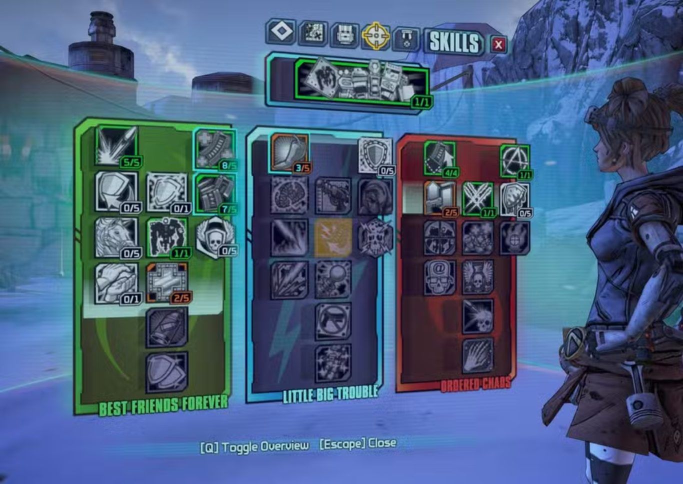 كما تظهر الروح نفسها في مهارة Trick Shot التي تجعل الطلقات ترتد وتولد مقذوفات إضافية تسبب ضررا جديدا. وهذه الفكرة تنتمي بوضوح إلى المدرسة التي مثلتها مهارات مثل Nth Degree وClose Enough لدى Gaige حيث كانت الضربات المتعددة والارتدادات المتلاحقة قادرة على صنع تصاعد هائل في الضرر كلما زاد عدد الأهداف أو كثافة الاشتباك. وفي الحالتين لا تكون قيمة المهارة في الطلقة الأولى فقط بل في ما تفتحه هذه الطلقة من تفاعلات لاحقة قد تتحول إلى سلسلة كاملة من الإصابات والتأثيرات. وهذا النوع من التصميم يخلق متعة خاصة لأنه يجعل اللاعب يشعر بأن الفوضى التي يطلقها ليست عشوائية بالكامل بل هي فوضى منتجة تحمل داخلها منطقها الخاص.