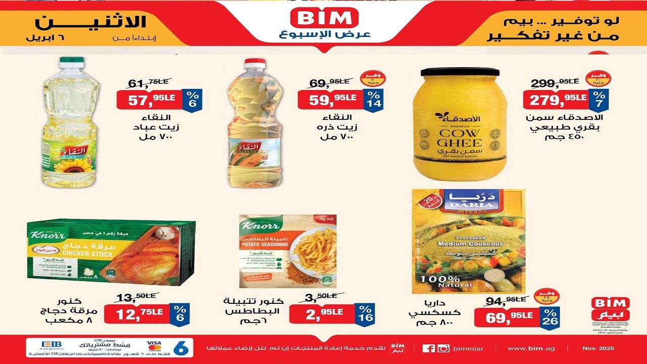 الخصومات الجديدة سارية من الاثنين 6 ابريل 2026 فى كل فروع بيم ماركت المنتشرة فى مصر وتصل لاكثر من 500 فرع ????